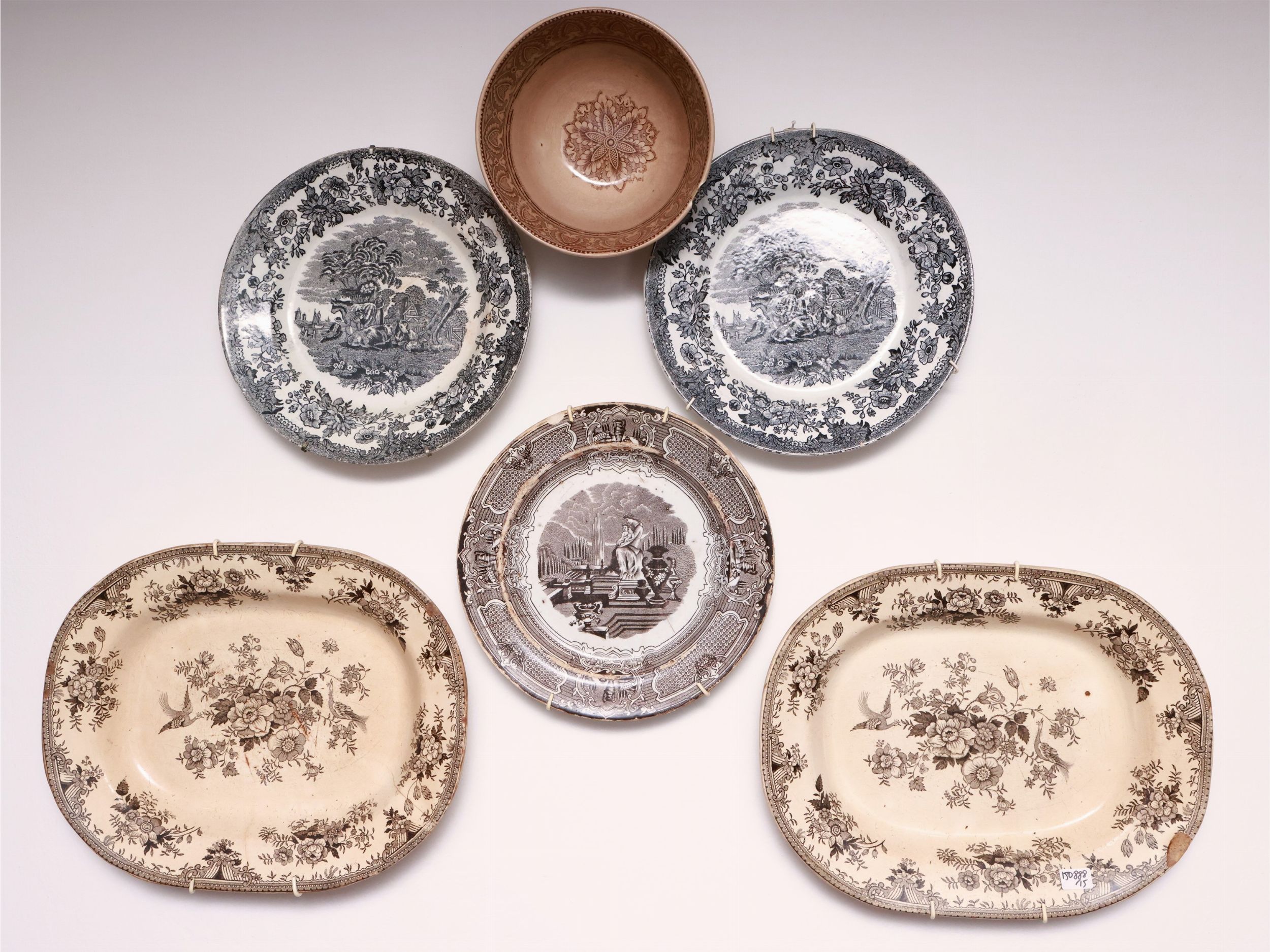 XIX/XX secolo tra cui una serie di sei lunette da insalata in monocromia verde e tre piatti con stemmi gentilizi, alcuni difetti (15)