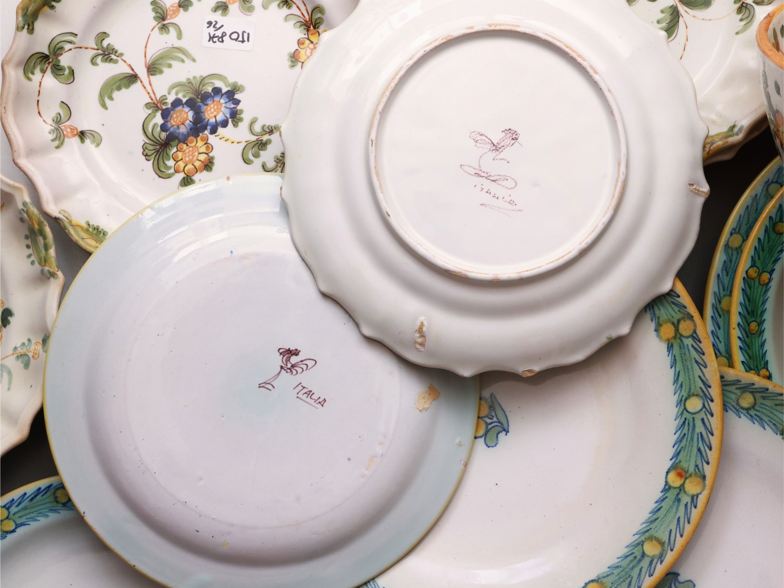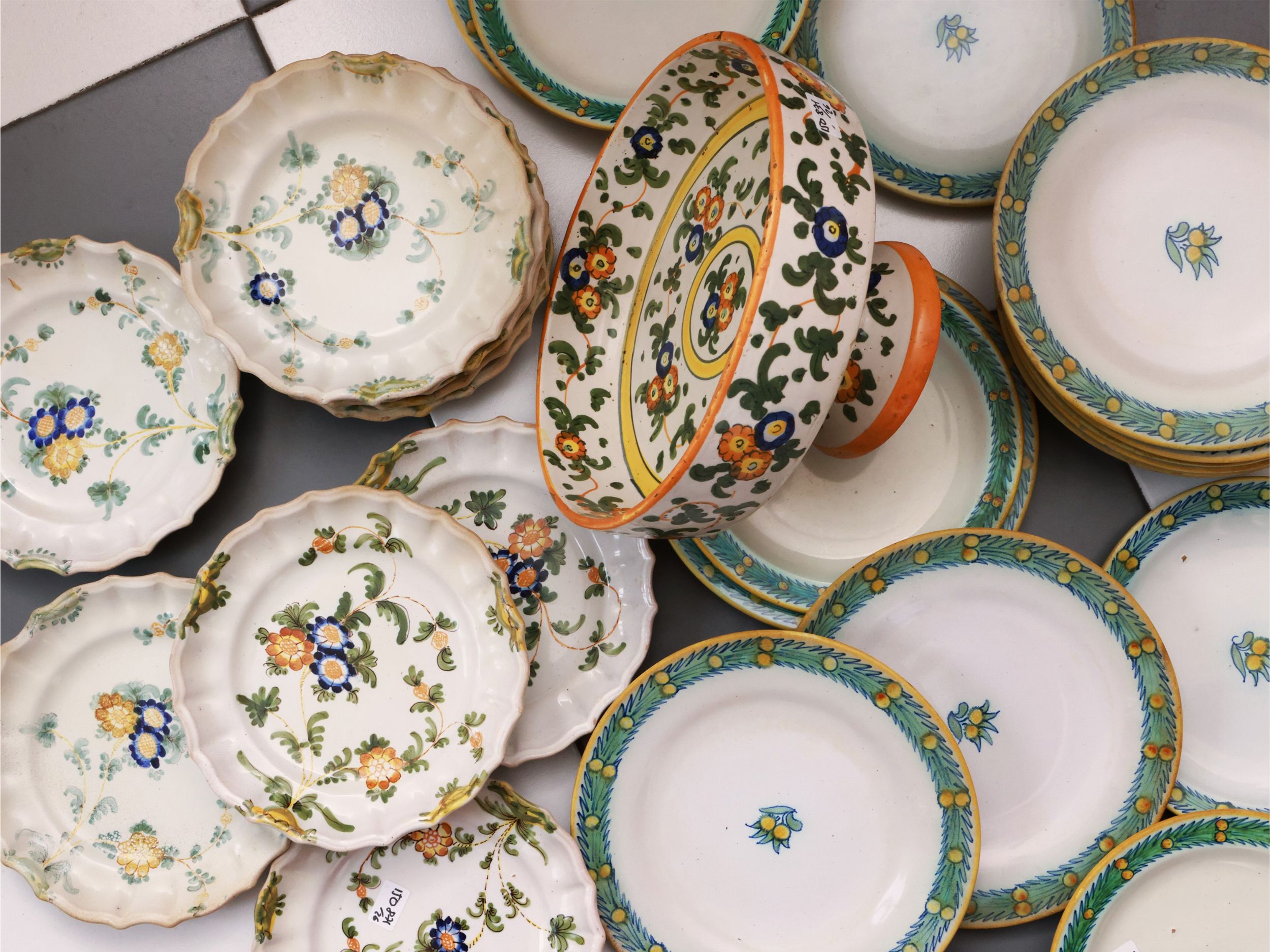 Assortimento di piatti in terraglia invetriata, Cantagalli