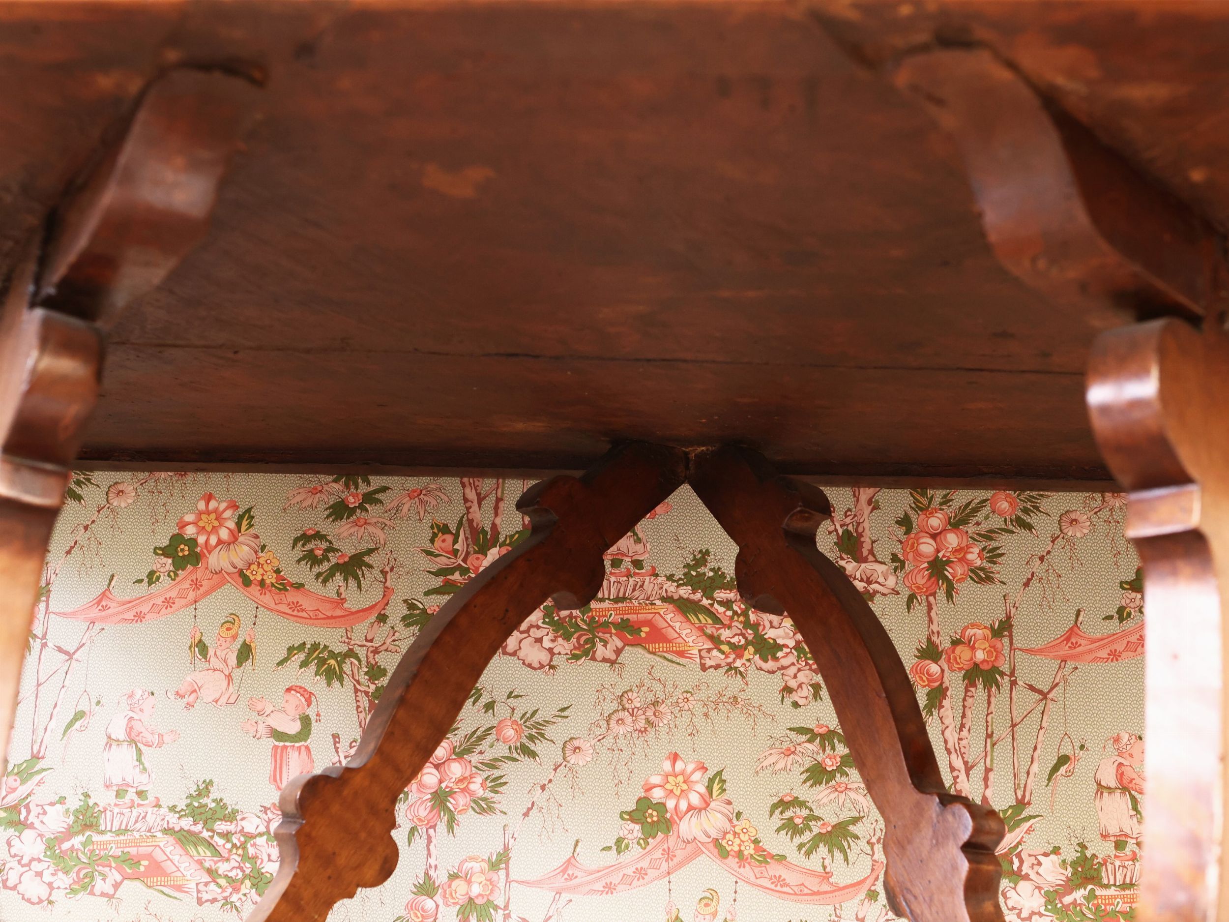 XVII secolo piani trapezoidali, unibili a formare un grande tavolo ottagonale, sostegni a lira con traverse sagomate