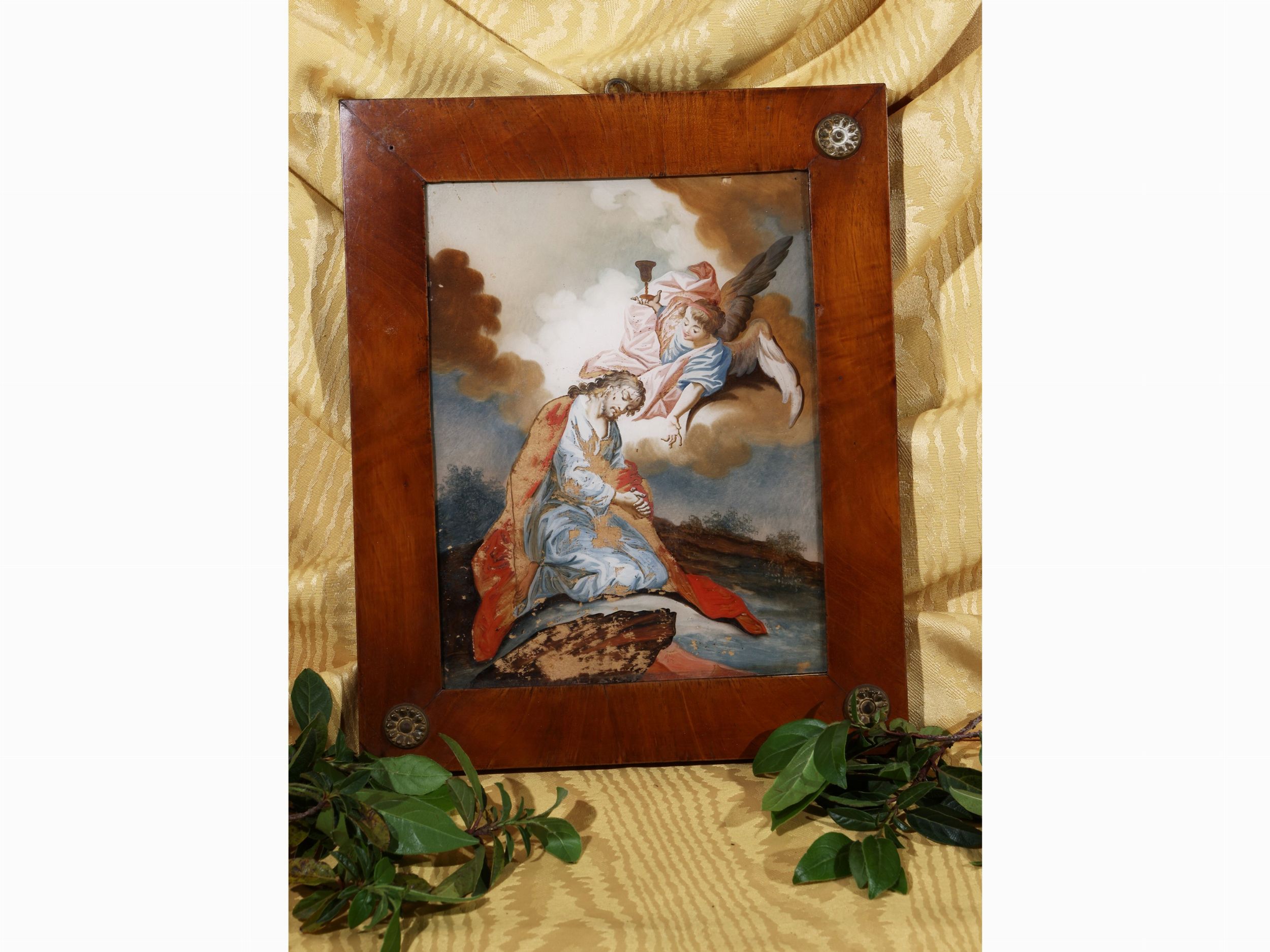 XVIII/XIX secolo olio su vetro, in cornice, alcuni difetti