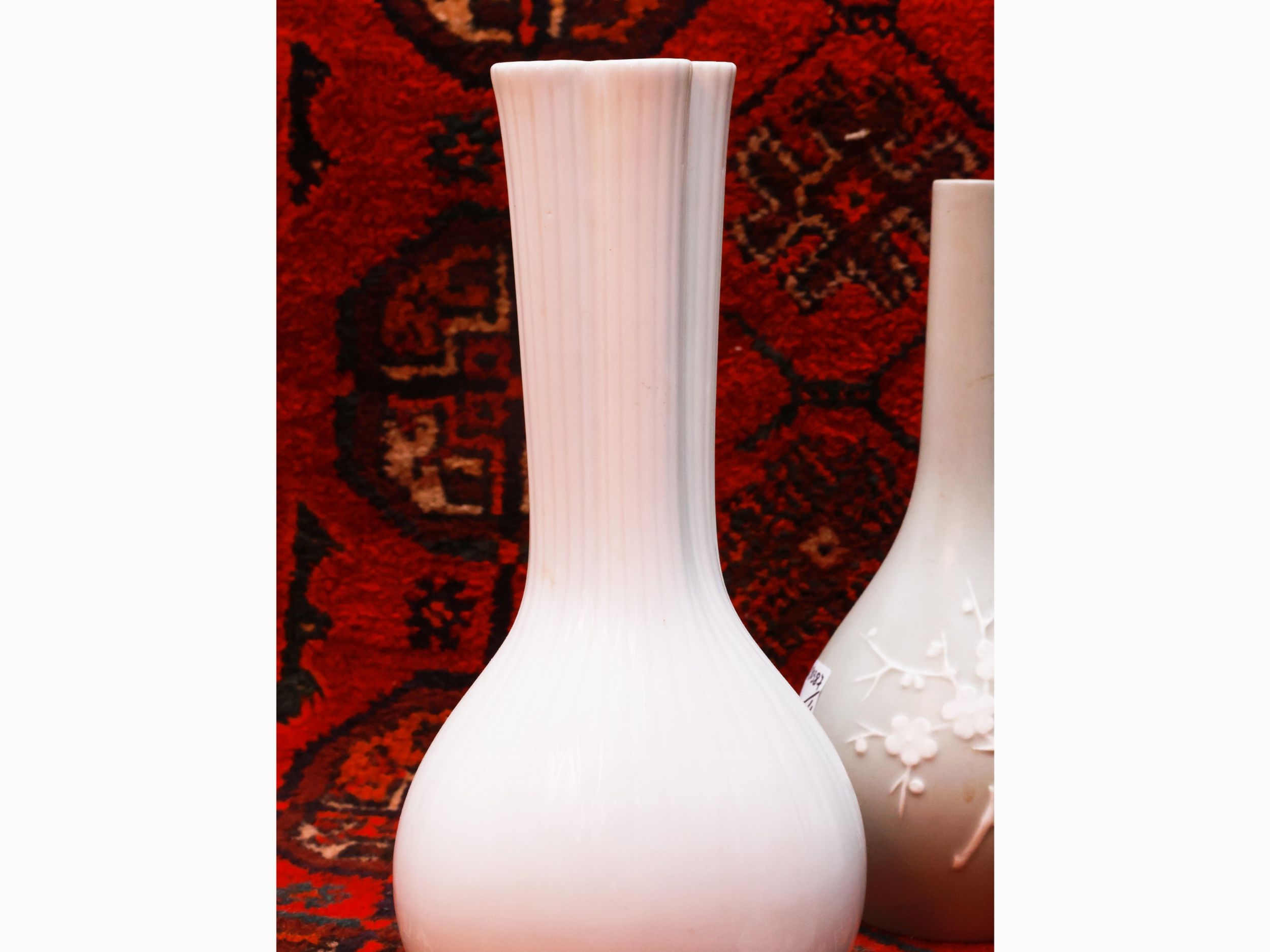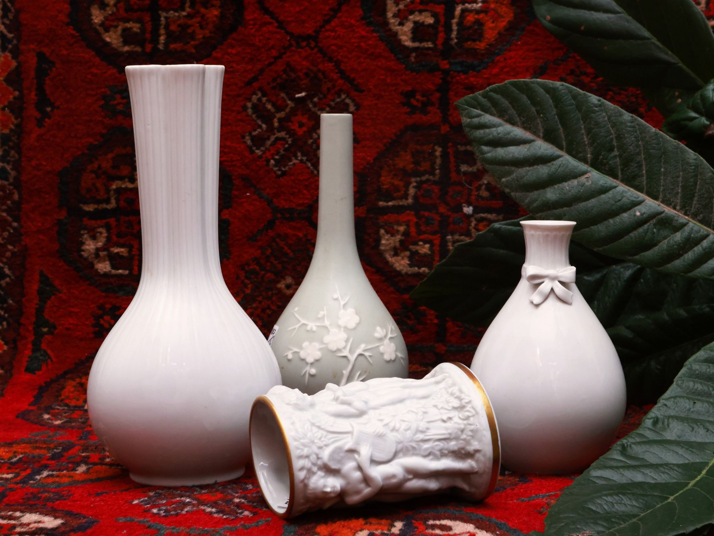 h da cm 11 a cm 23 (4) seconda metà del XX secolo uno realizzato come un finocchio stilizzato, in origine eseguito dall'artista per Ginori San Cristoforo negli Anni Quaranta ed uno con nodo d'amore il cui modello originale risale agli Anni Cinquanta, abbinati ad altri due di altre manifatture