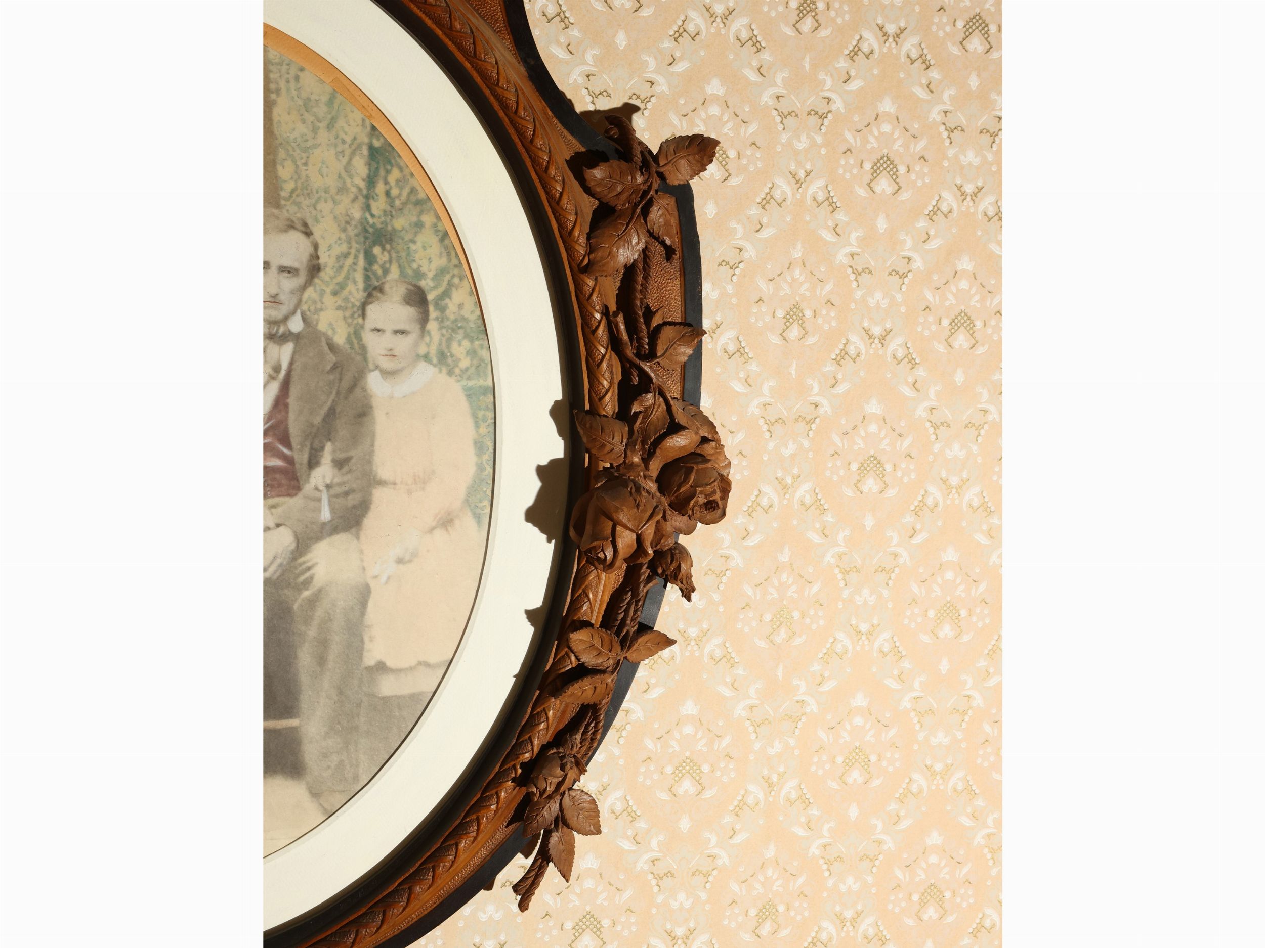 seconda metà del XIX secolo luce ovale, cimasa scolpita come un cherubino in preghiera, tralci di rose a tutto tondo ricadenti sui lati