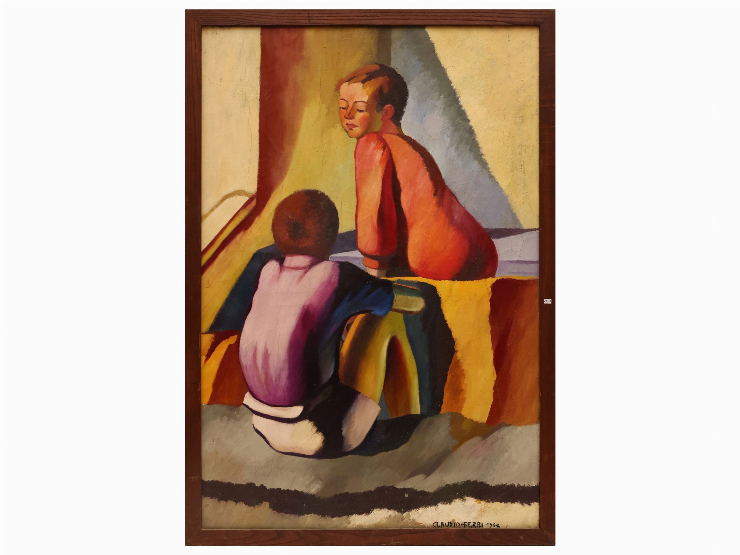 XX secolo olio tela, firmato e datato, in cornice , alcuni difetti