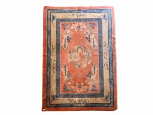 cm 191x126 Cina campo magenta decorato con animali simbolici quali Garuda e draghi nei toni del blu e del bia [..]
