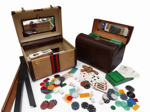 Anni Sessanta composto da due specchi a mano, due spazzole, quattro flaconi e tre scatole con decorazioni simili, [..]
