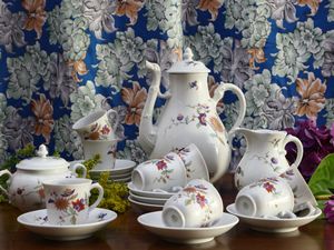 XX secolo composto da due teiere, due zuccheriere, due grandi bricchi da latte, 8 tazze da tè con piattino, 6 [..]