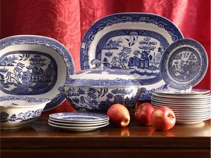 ciotole da diam cm 6,5 a cm 11, vassoi da cm 23x16,5 a cm 25,5x18 (49) per sei persone, decorato a chinoserie [..]
