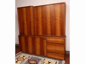 credenza h cm 60x90x48; pensile h cm 60x90x38 (2) Anni Sessanta composto da due elementi, ciascuno a due sportelli, [..]
