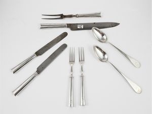 gr netti 1520 (38) XIX secolo composto da 12 forchette, 12 cucchiai, 12 coltelli e due posate da arrosto con [..]
