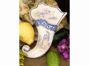 h cm 27x17 Francia, XIX/XX secolo realizzata a cornucopia, dipinta con figure in abito popolare, lievi difett [..]