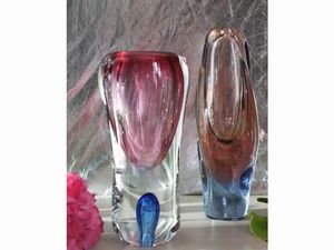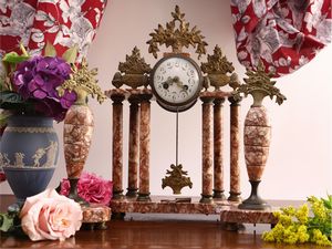h da cm 31 a cm 44 (3) inizio del XX secolo composto da orologio a tempietto e coppia di vasi, quadrante con [..]