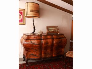 h cm 132x127x47 inizio del XX secolo alzata a tre sportelli, piano con bordo a gocciolatoio, un cassetto sottostante [..]