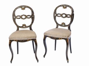 h cm 80x70x70 inizio del XX secolo di gusto settecentesco, schienali avvolgenti intagliati con motivi a rocaille [..]