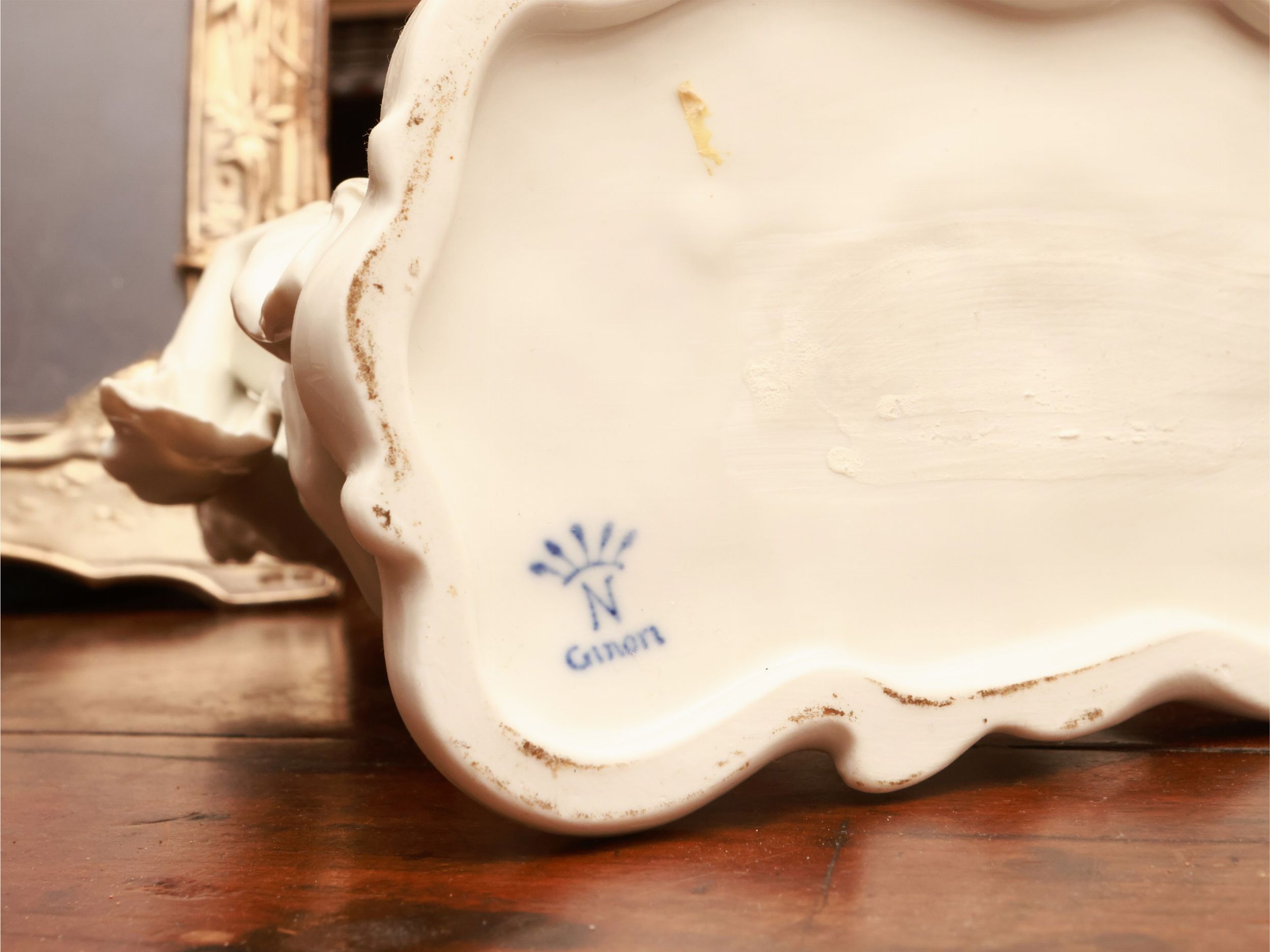 gruppo in porcellana h cm 20 (8) XIX/XX secolo tra cui un gruppo in porcellana Richard Ginori raffigurante un concertino, tre cornici in argento, un lume ricavato da un portapalmette d'epoca ed una torciera in legno intagliato e dorato, lievi difetti