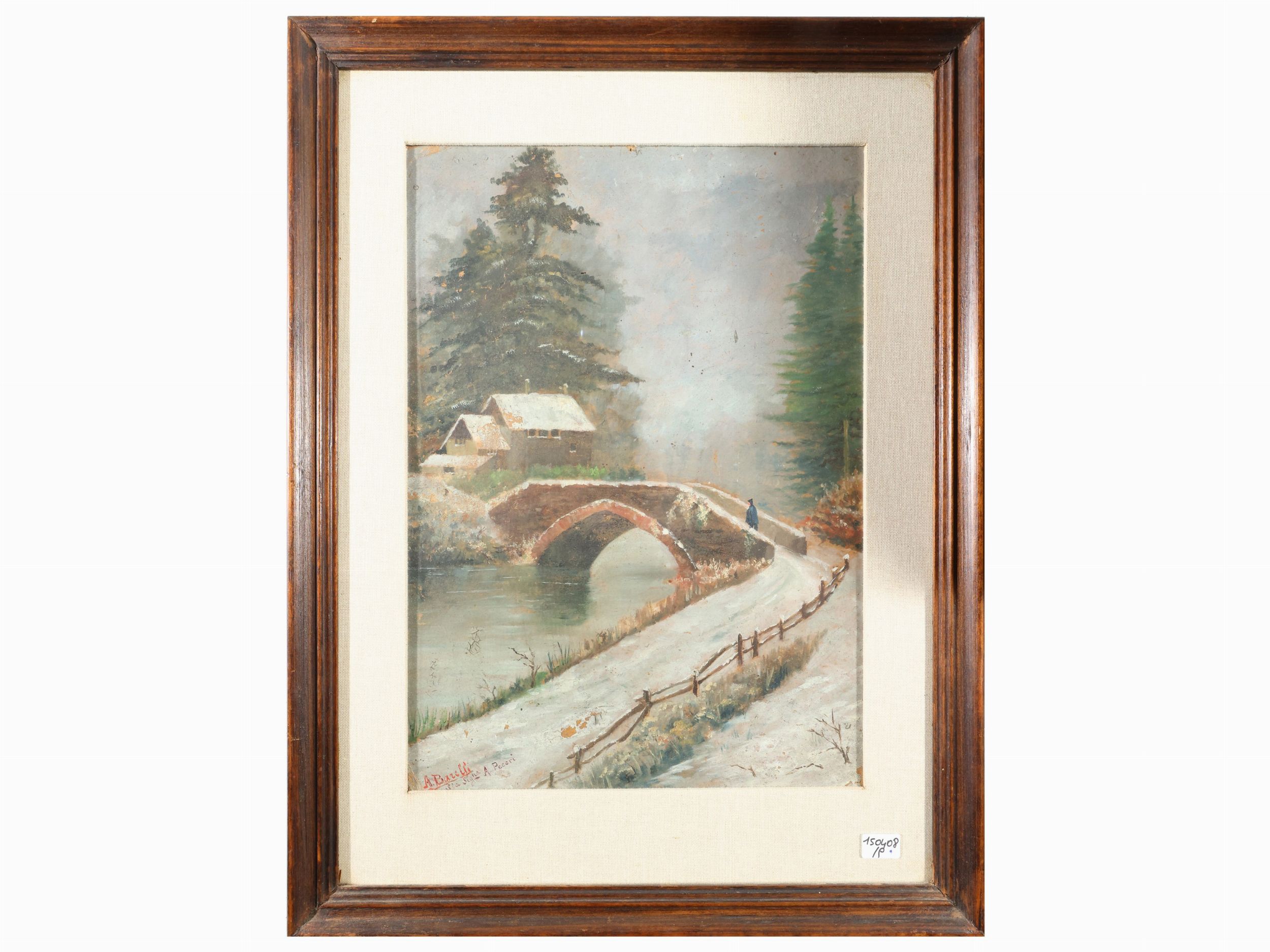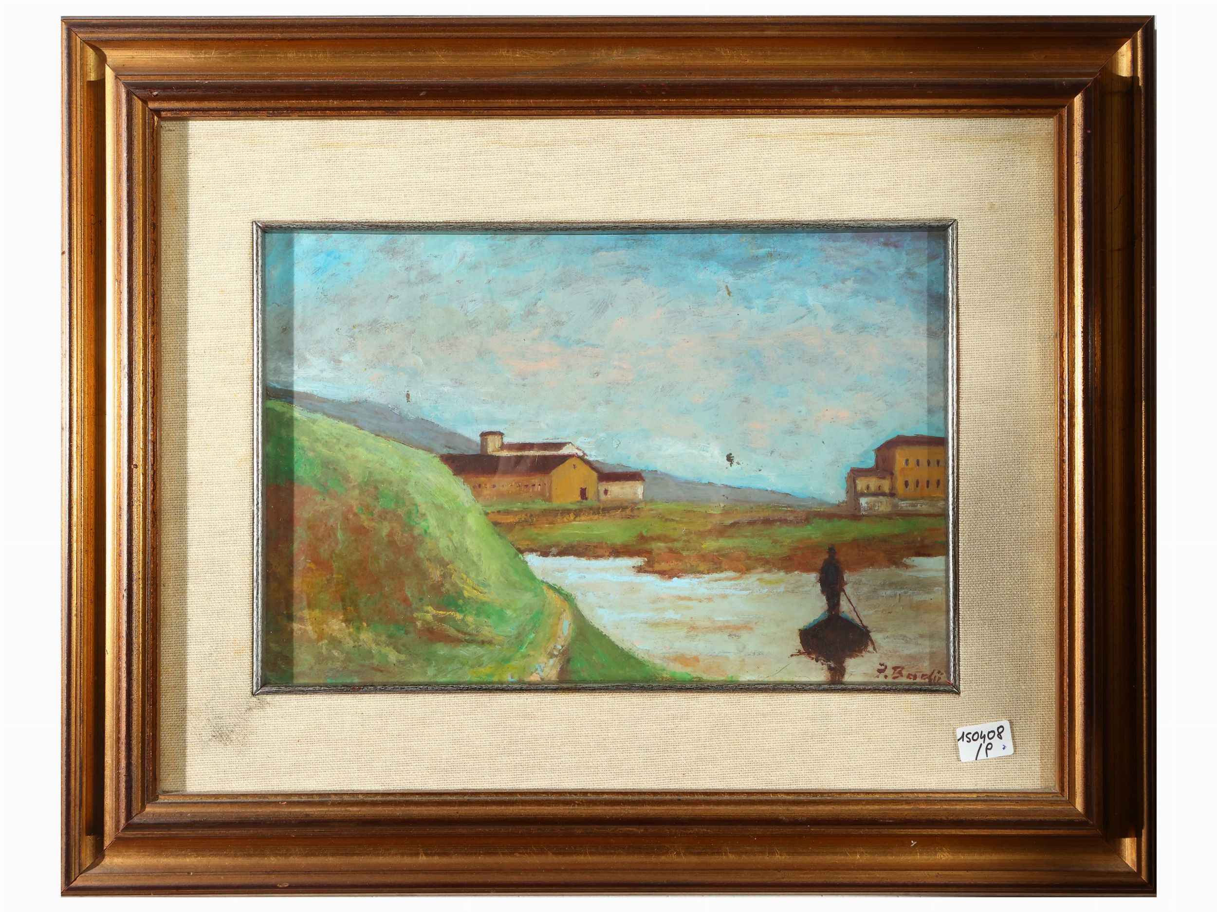 XX secolo raffiguranti due scorci fiorentini, una scena campestre e paesaggi toscani, due dei quali di Ugo Capitoni e uno di Beppe Righi, in cornice