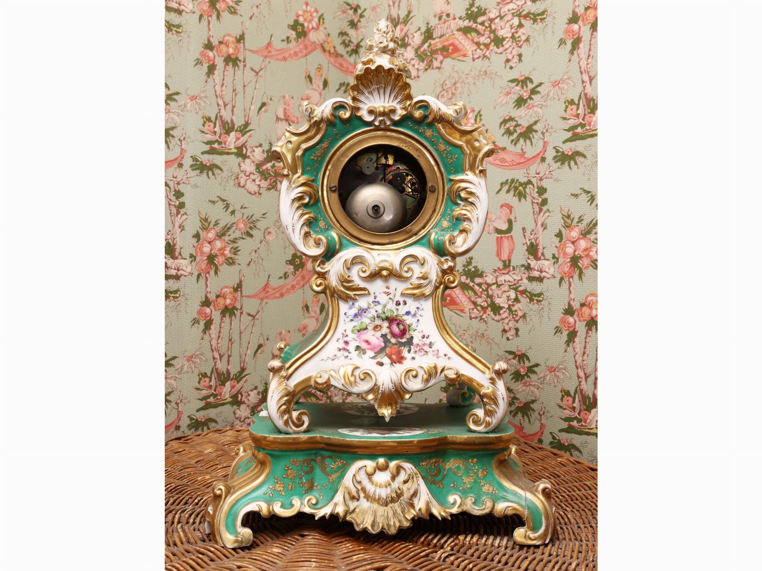 Francia, metà del XIX secolo dipinto con scene di genere e lumeggiature dorate su fondo verde smeraldo, corredato da base, alcuni difetti