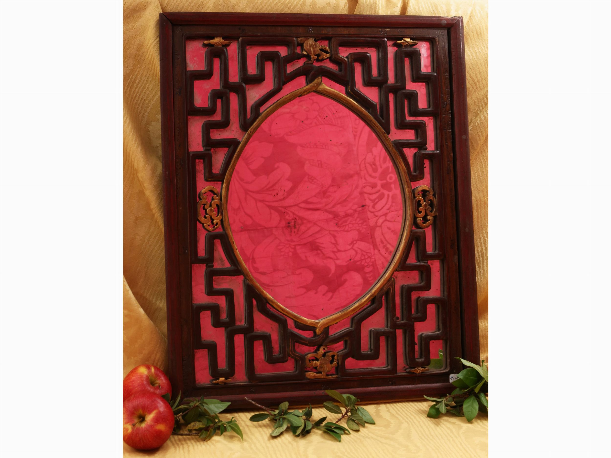 Cina, inizio del XX secolo intagliata con motivo a labirinto e dettagli a volute dorati, alcuni difetti