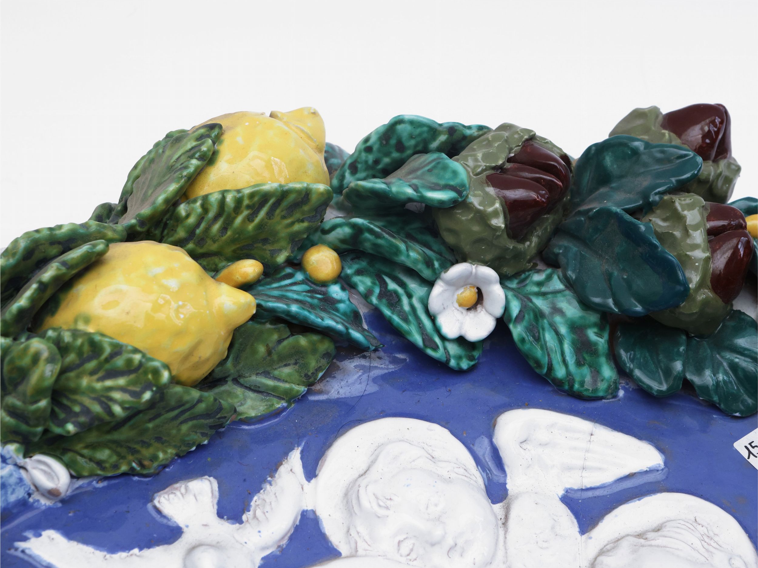 Tondo ad alto e bassorilievo in terracotta smaltata