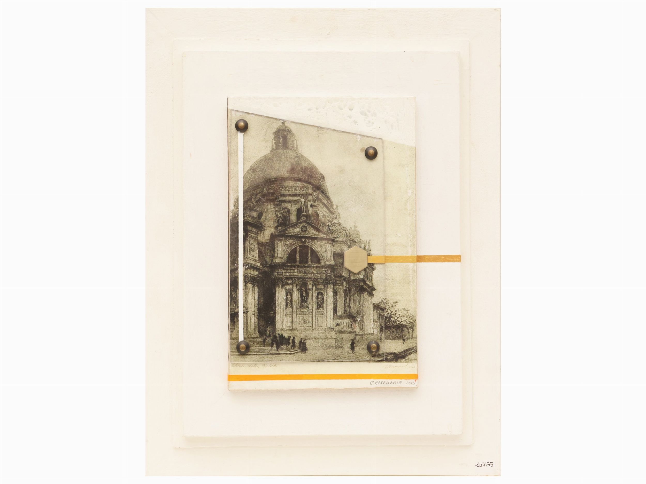 tecnica mista su faesite, firmato e datato, firmato, datato e titolato al verso, difetto