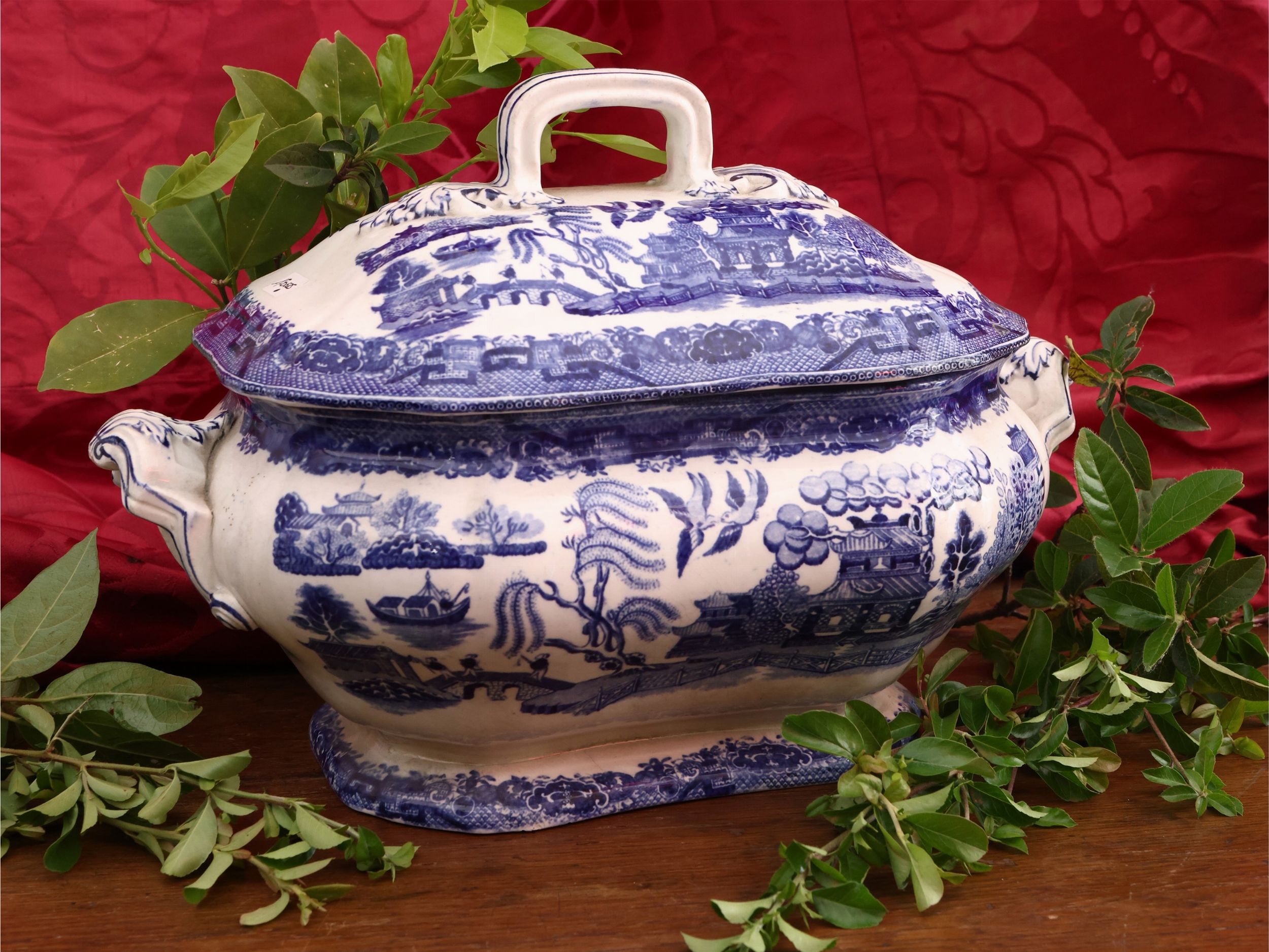XIX/XX secolo dipinta a chinoiserie in monocromia blu, alcuni difetti
