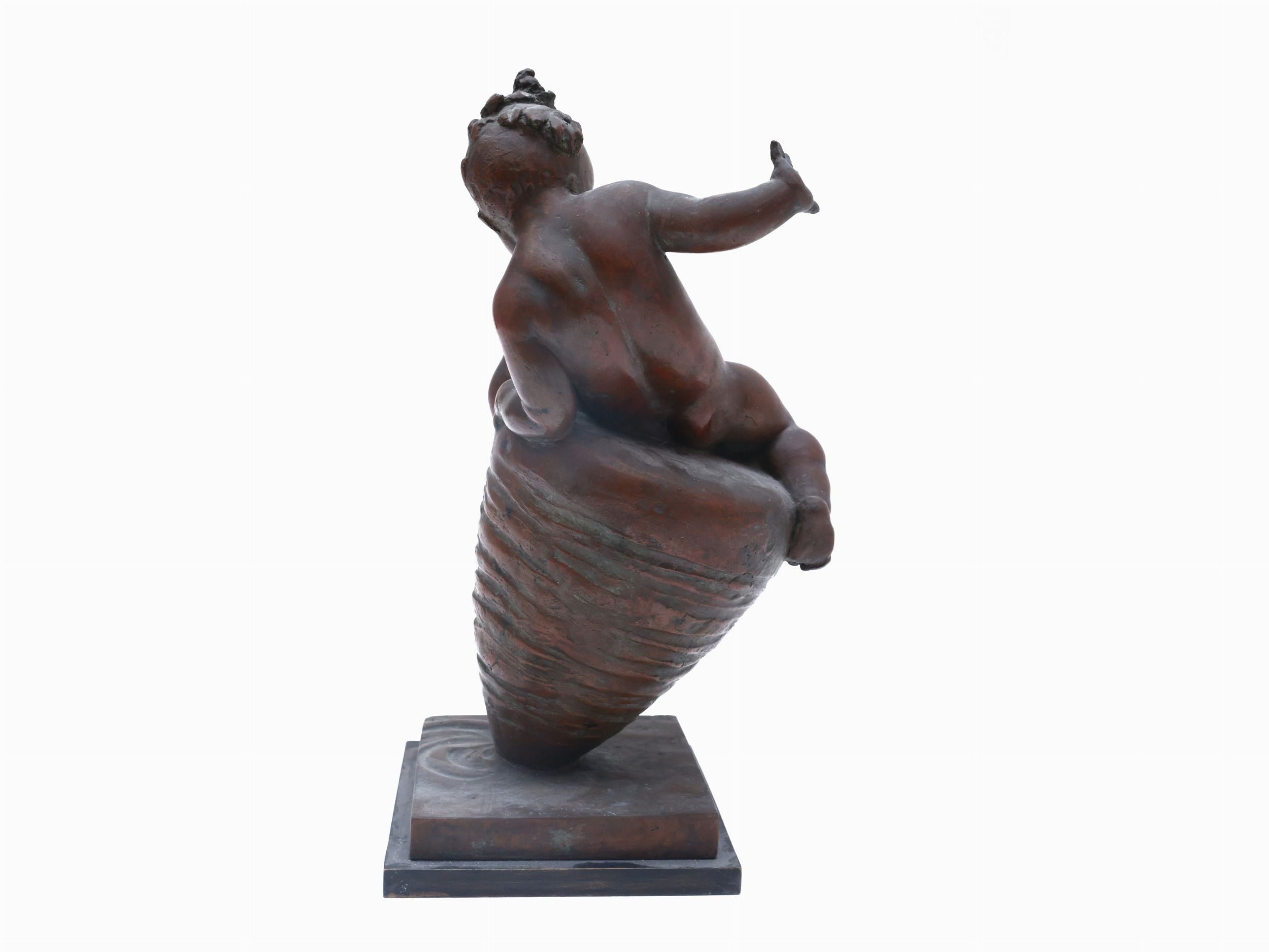 prima metà del XX secolo gruppo in bronzo, firmato Manzoni e datato, su base in legno
