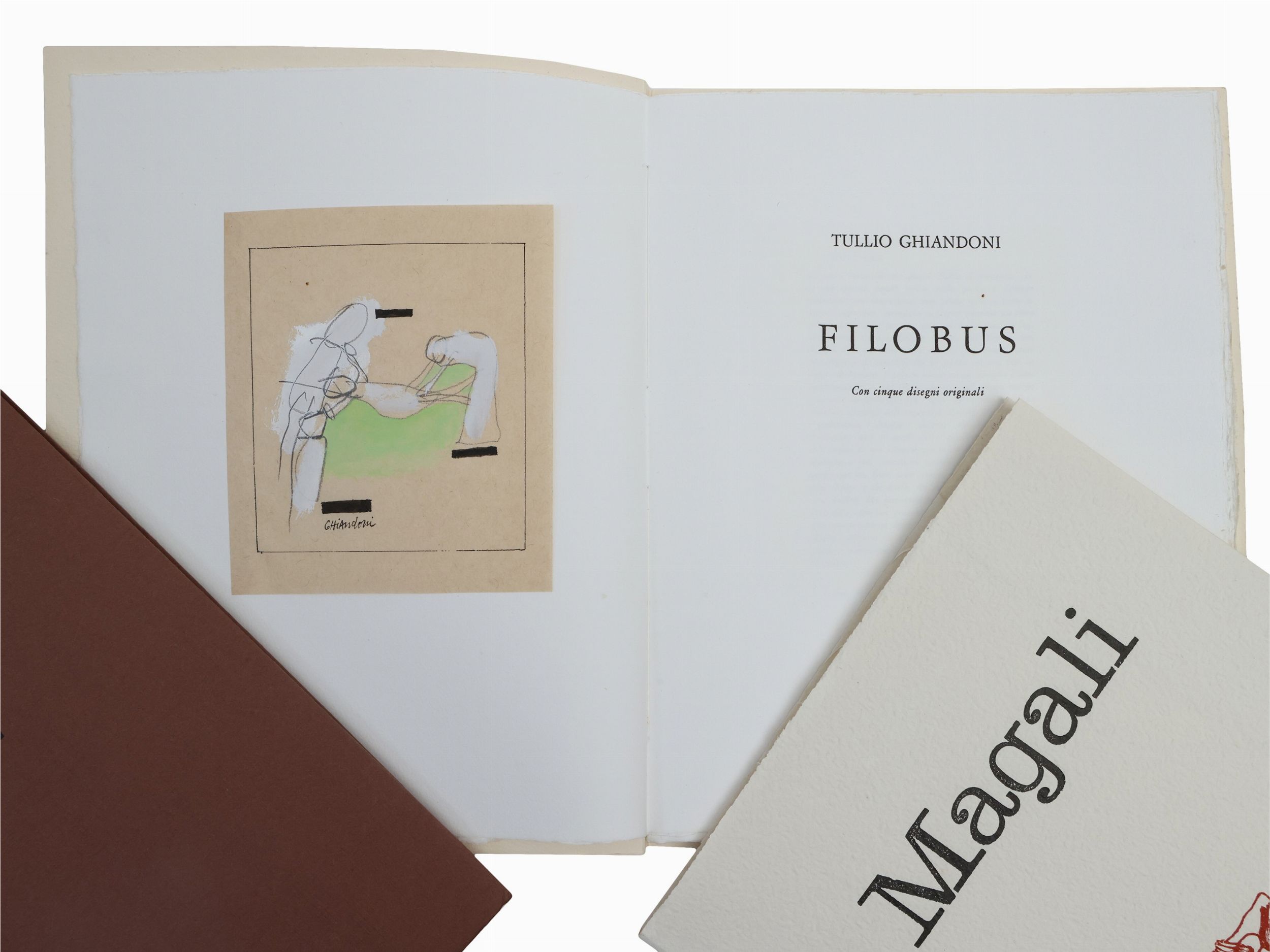 - Tullio Ghiandoni, Filobus, Bucciarelli, 1967, 42 p. (280x215 mm). Con 5 disegni originali (120x100, 85x60, 80x85, 85x50, 80x65 mm) firmati, di Tullio Ghiandoni. Es. n. 15/40 su carta a mano Fabriano.