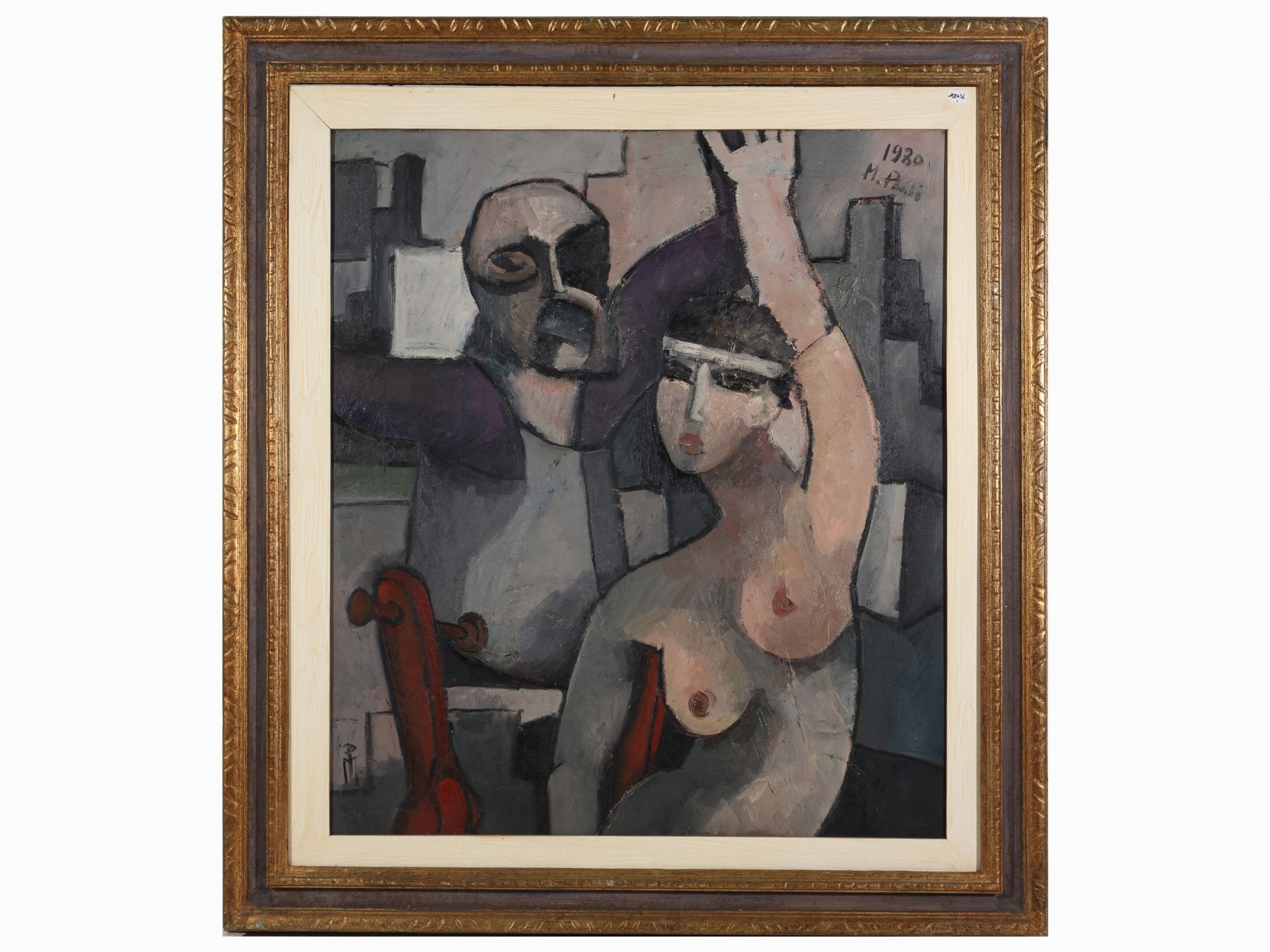 XX secolo olio su tela, firmato e datato, firmato, datato e titolato al verso, in cornice