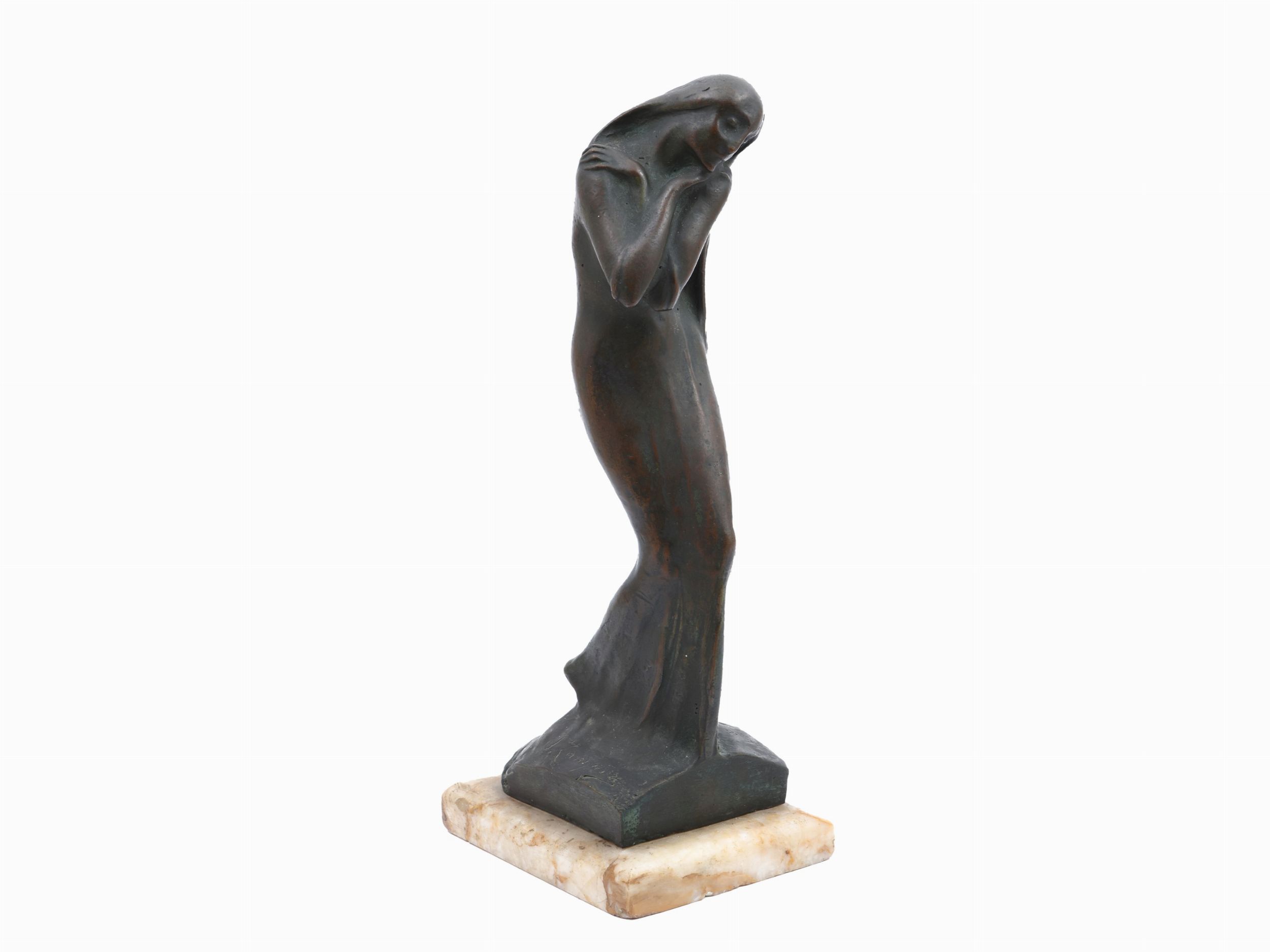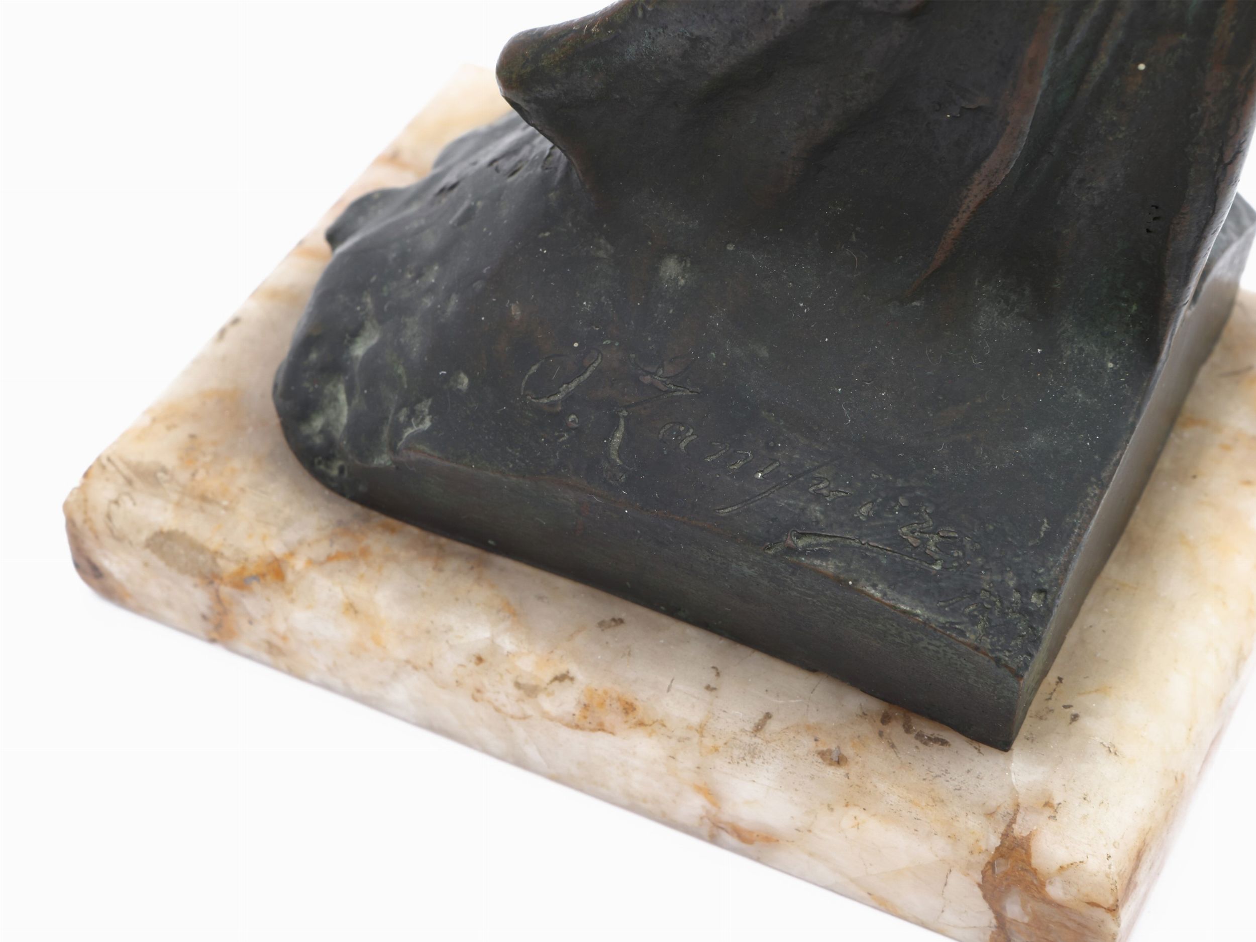 fine del XIX/inizio del XX secolo scultura in bronzo, firmata, su base in marmo