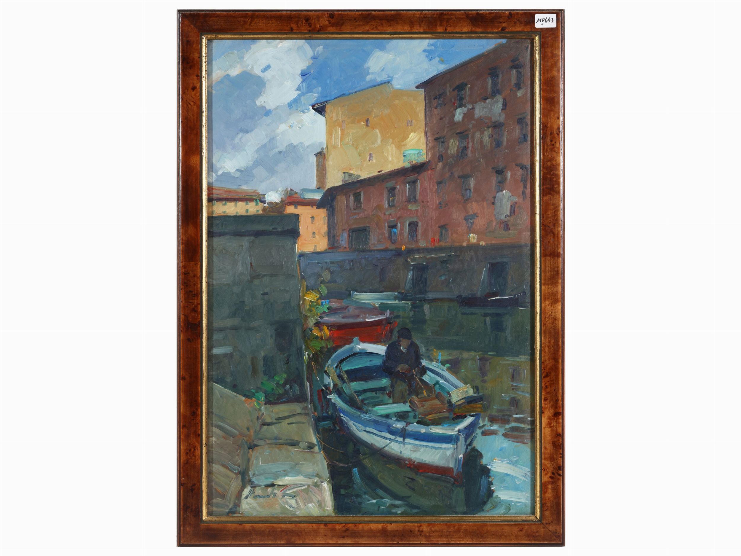 olio su faesite, firmato, firmato e titolato al verso, in cornice