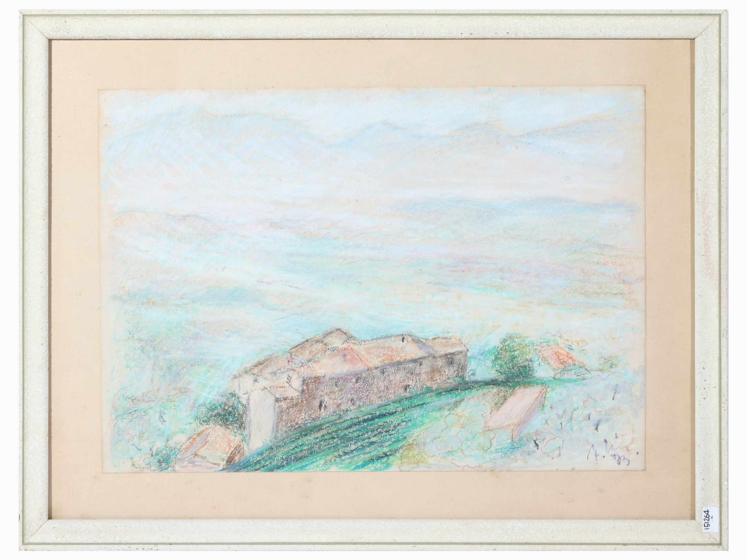 pastello su carta, firmato e datato, in cornice, parzialmente applicata a cartoncino