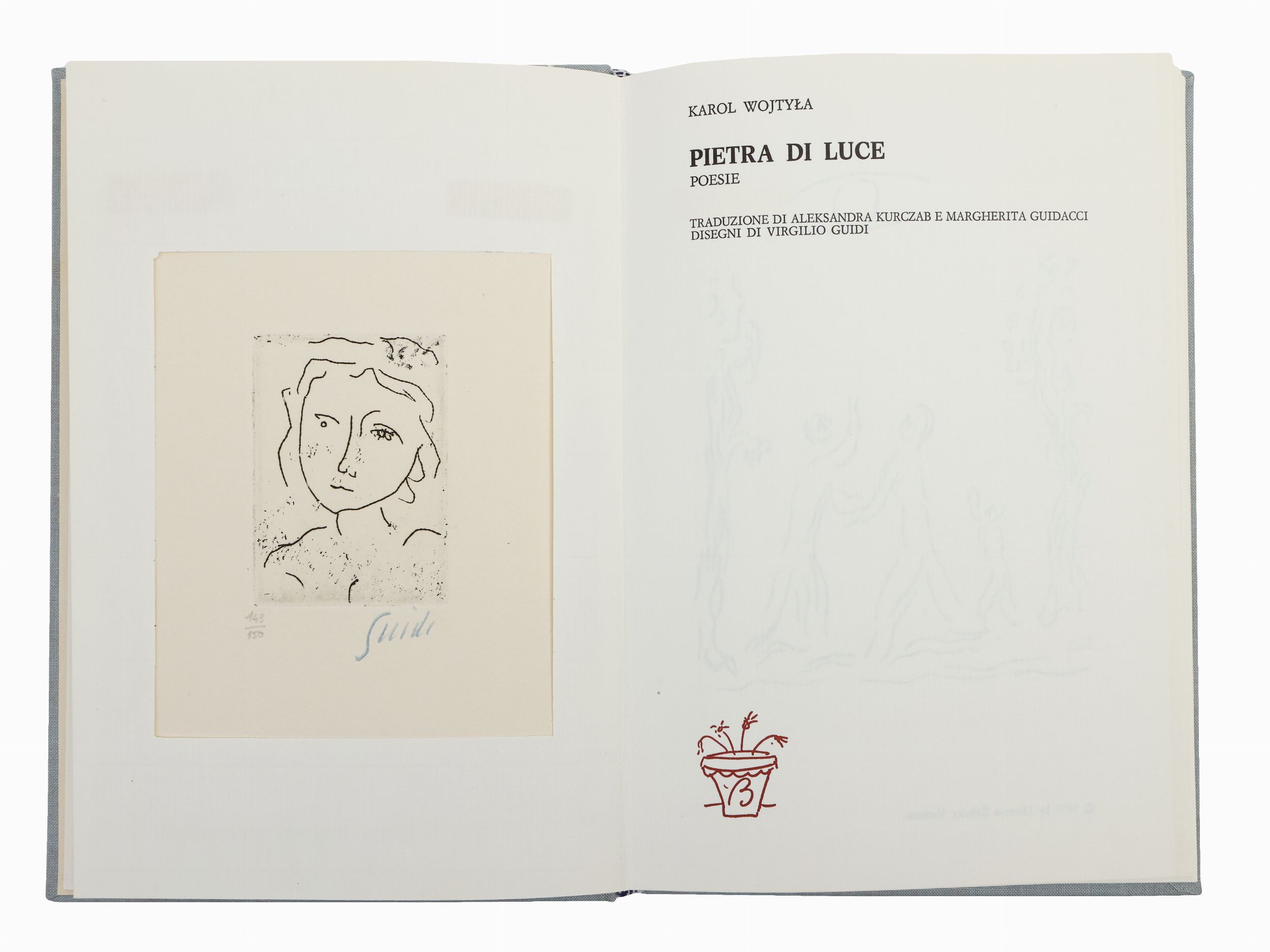 - Karol Wojtyla, Pietra di luce, poesia. Trad. di Aleksandra Kurczab e Margherita Guidacci, disegni di Virgilio Guidi, Bucciarelli by Libreria Editrice Vaticana, 1979, 109 p. (220x150 mm). Edizione curata da Brenno Bucciarelli con una acquaforte originale (69x49 mm) numerata e firmata, di Virgilio Guidi. Es. n. 143/150.