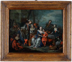 Scuola fiamminga del XVIII secolo Scena di banchetto