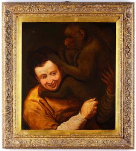 Scuola del XIX secolo Ragazzo e scimmia