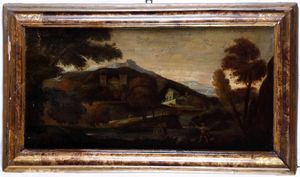 Scuola del XVII-XVIII secolo Paesaggio con viandanti