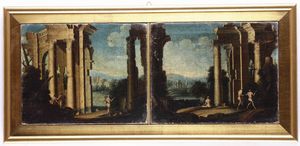 Scuola del XVIII secolo Capricci con rovine architettoniche e figure