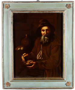 Scuola del XVIII secolo Paesano con ciotola di cibo