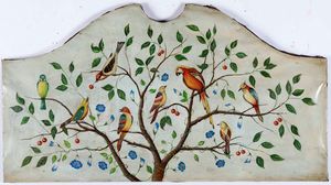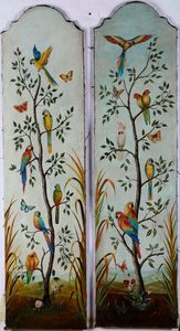 Scuola veneta del XIX secolo Coppia di pannelli con pappagallini sui rami