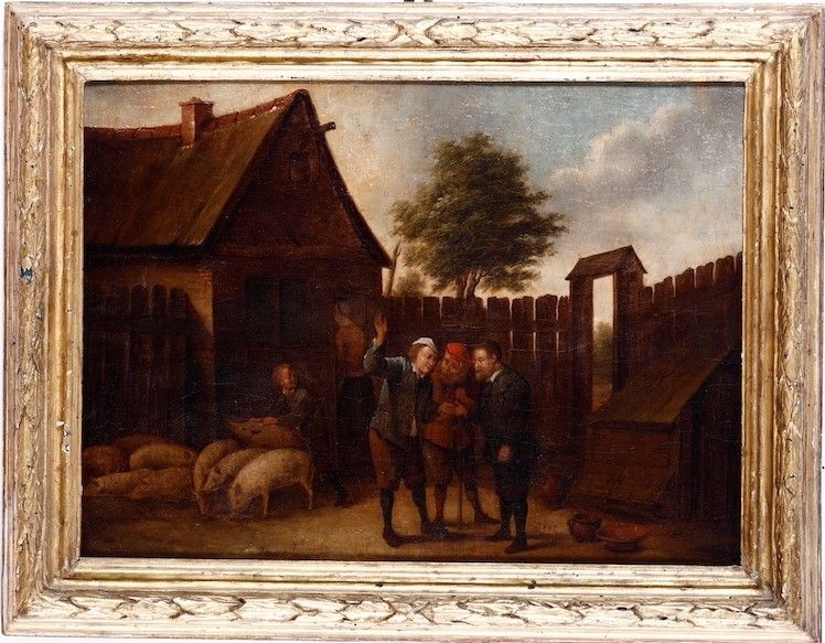Scuola fiamminga del XVII secolo Scena di genere con contadini