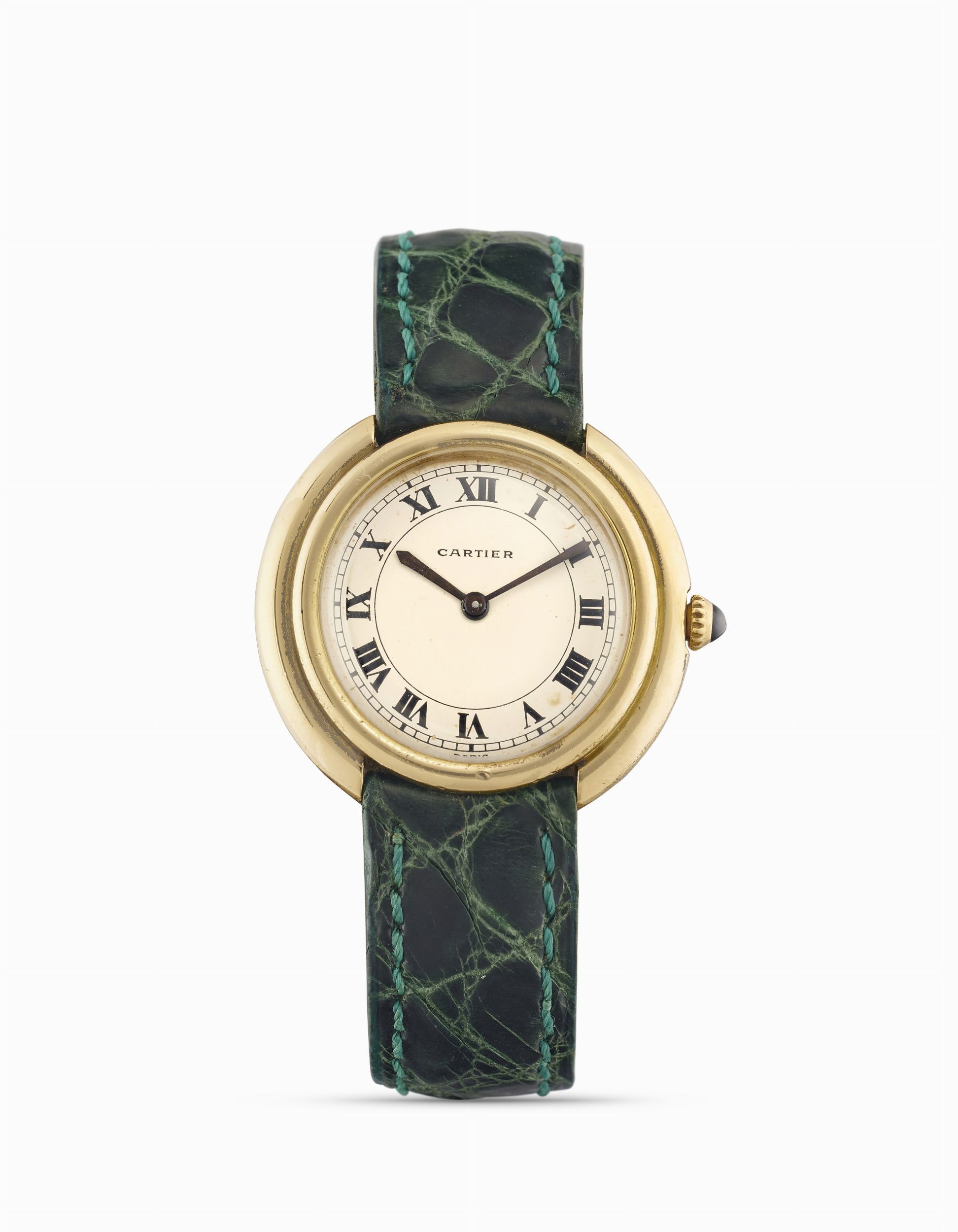 Cinturino in pelle e fibbia deployante Cartier in oro.