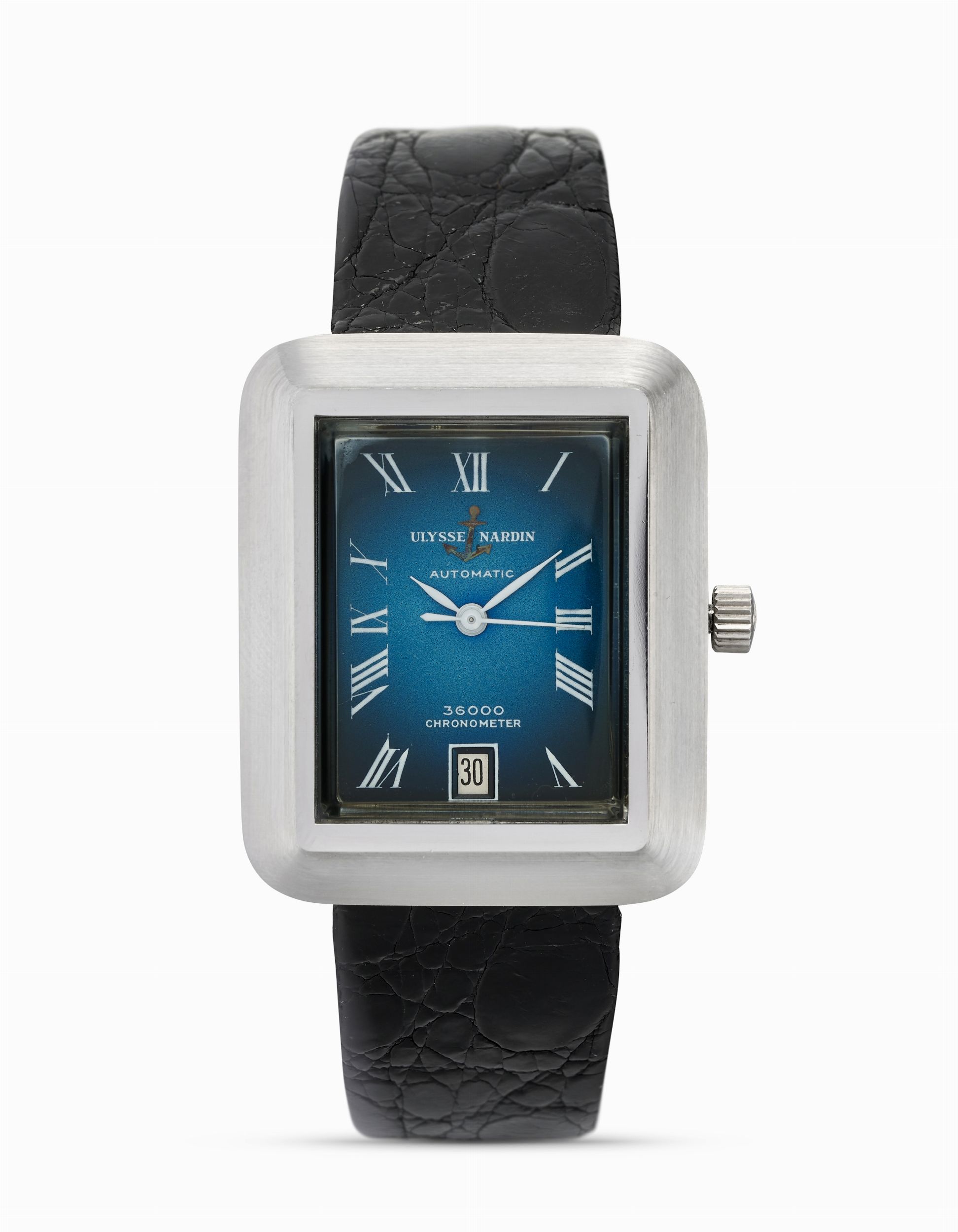 Cinturino Ulysse Nardin in pelle e fibbia Ulysse Nardin in acciaio.