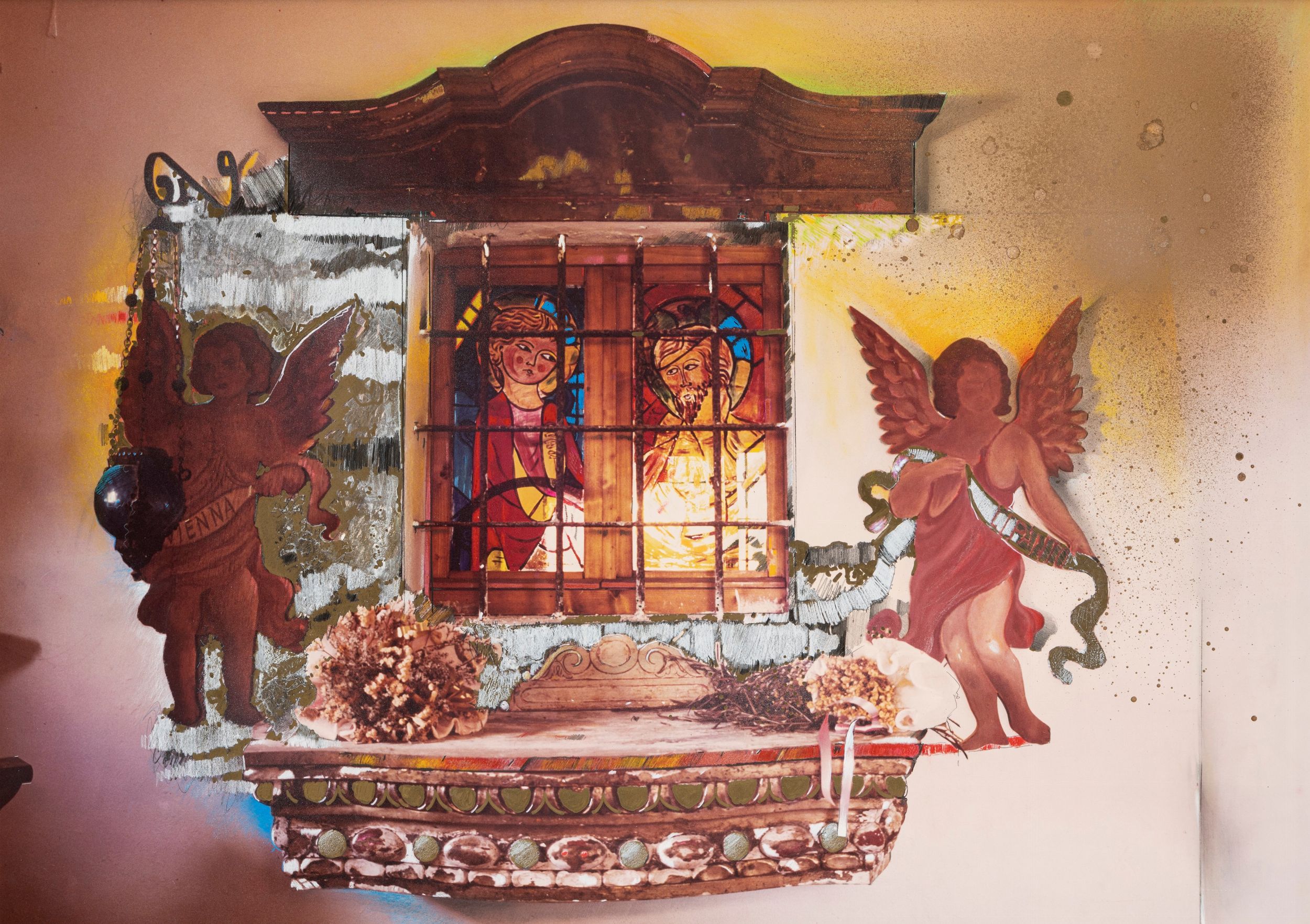 Stampa cibachrome vintage con interventi ad acrilico e matita montata su passepartout originale, cm 56 x 74 (cm 69,6 x 89,7 passepartout)