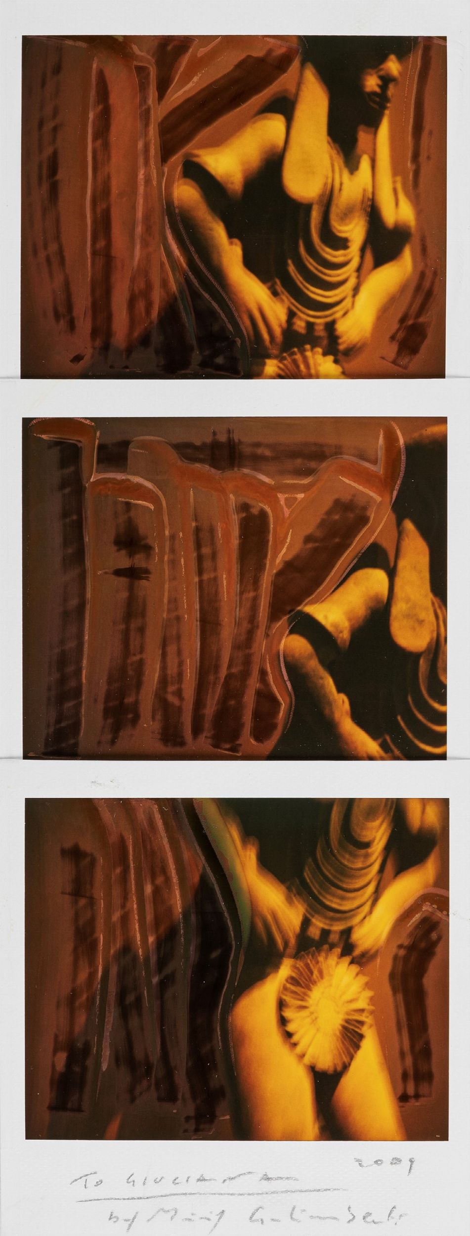Tre polaroid manipolate montate a mosaico, cm 26,5 x 10,3