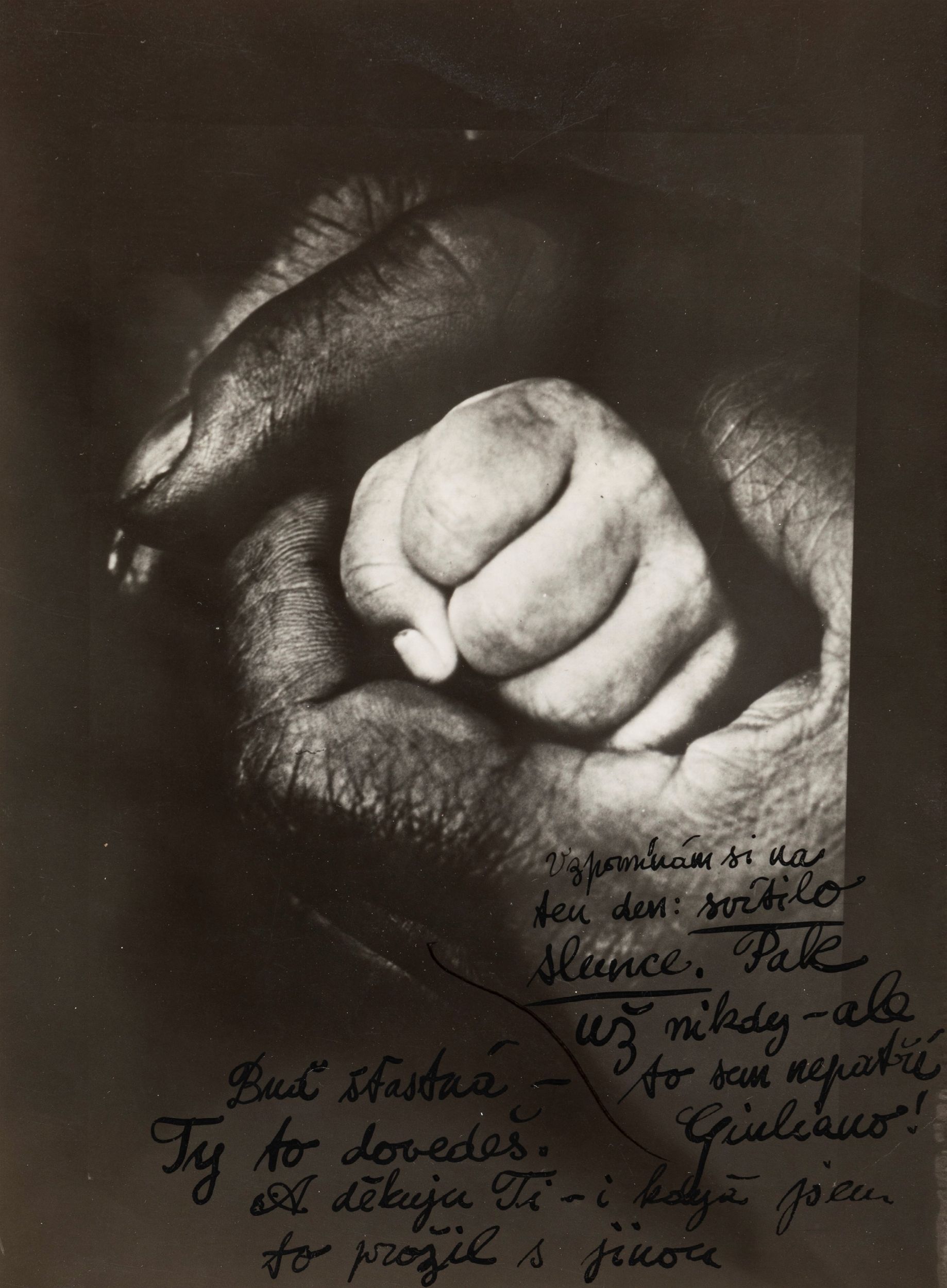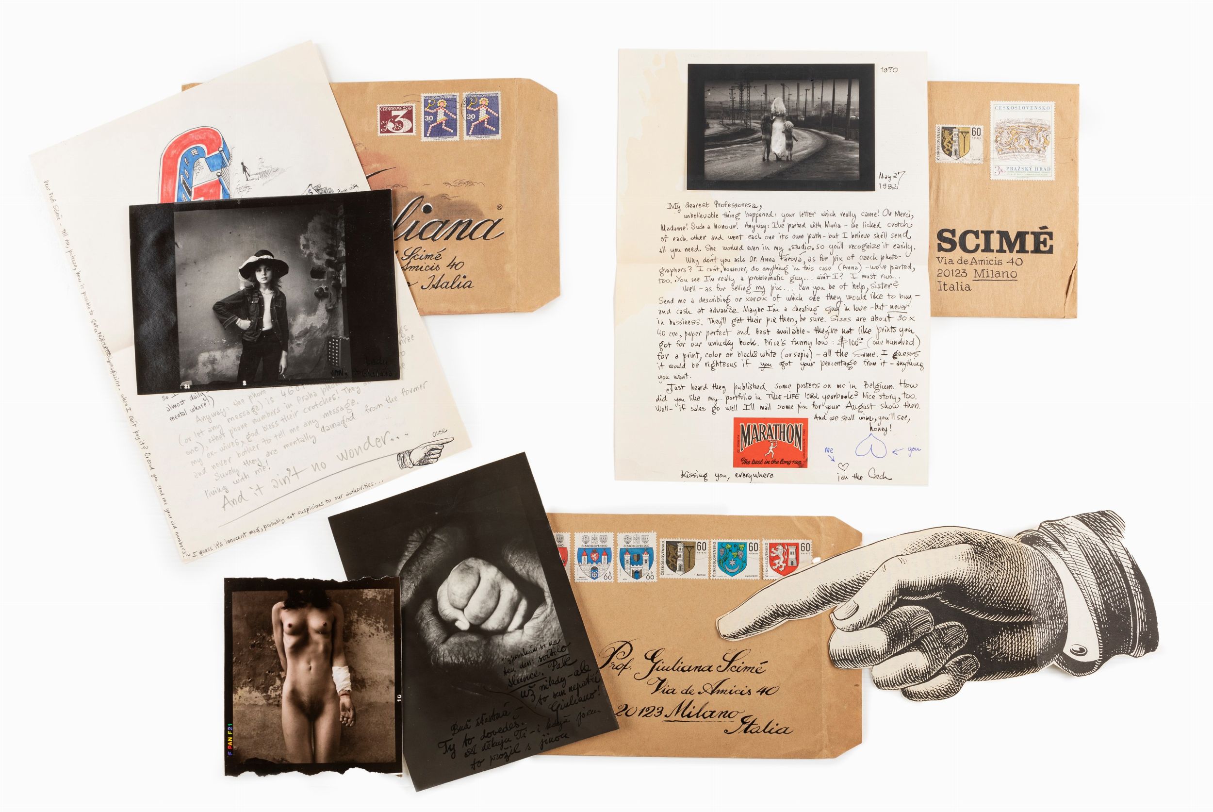 Tre stampe alla gelatina ai sali d'argento, una C-print e tre lettere in tre buste originali, cm 9 x 13,6 ; cm 19,3 x 14,3 ; cm 13 x 17,8 ciascuna foto ; cm 16 x 23 ciascuna busta