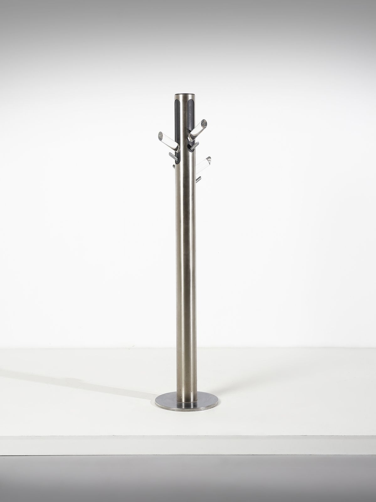 GIANFRANCO FINI & FABRIZIO COCCHIA Appendiabiti. Metallo cromato e plexiglass.. Cm 178x35. anni Settanta.