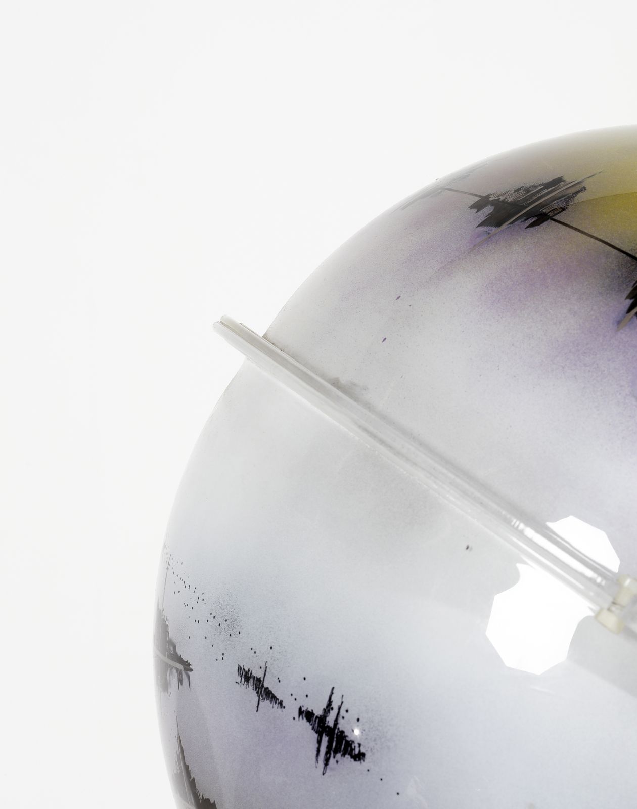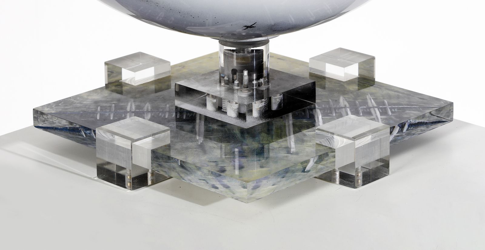 BOCOLA FRANCESCO (n. 1938) attribuito. Lampada da tavolo. Metallo cromato e vetro opalino bianco.. Cm 66x50x50. anni Ottanta.