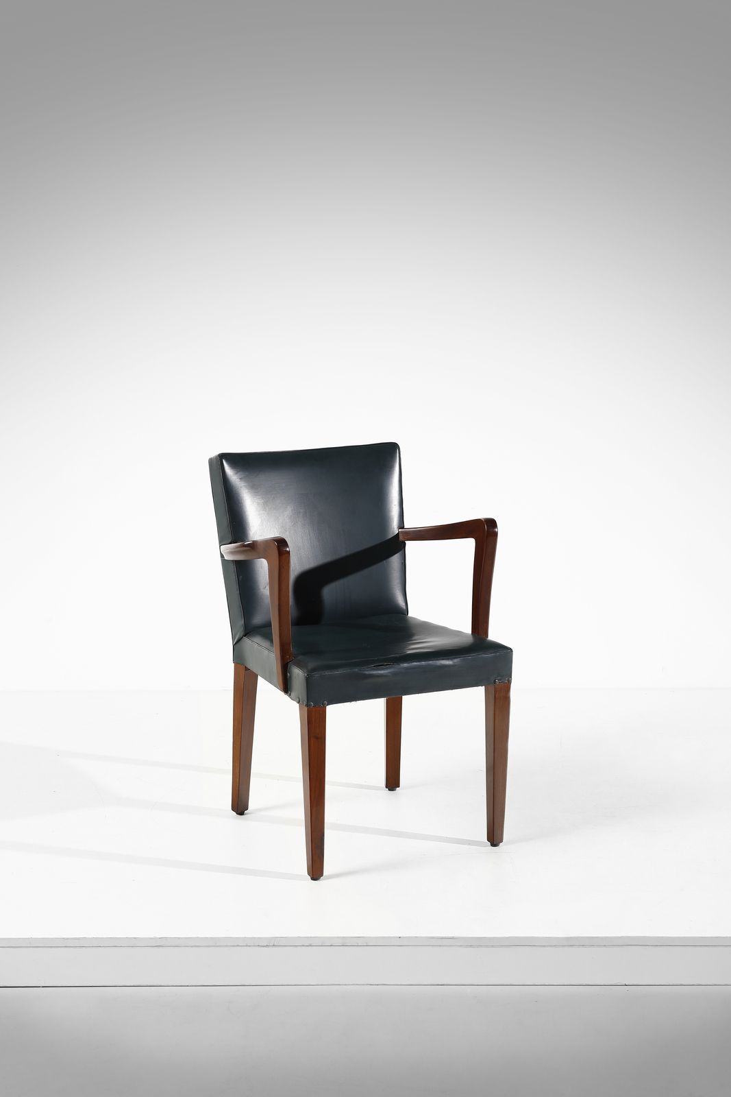PONTI GIO (1891 - 1979) attribuito. Poltroncina. Legno e similpelle imbottita.. Cm 898x55x50. anni Cinquanta.