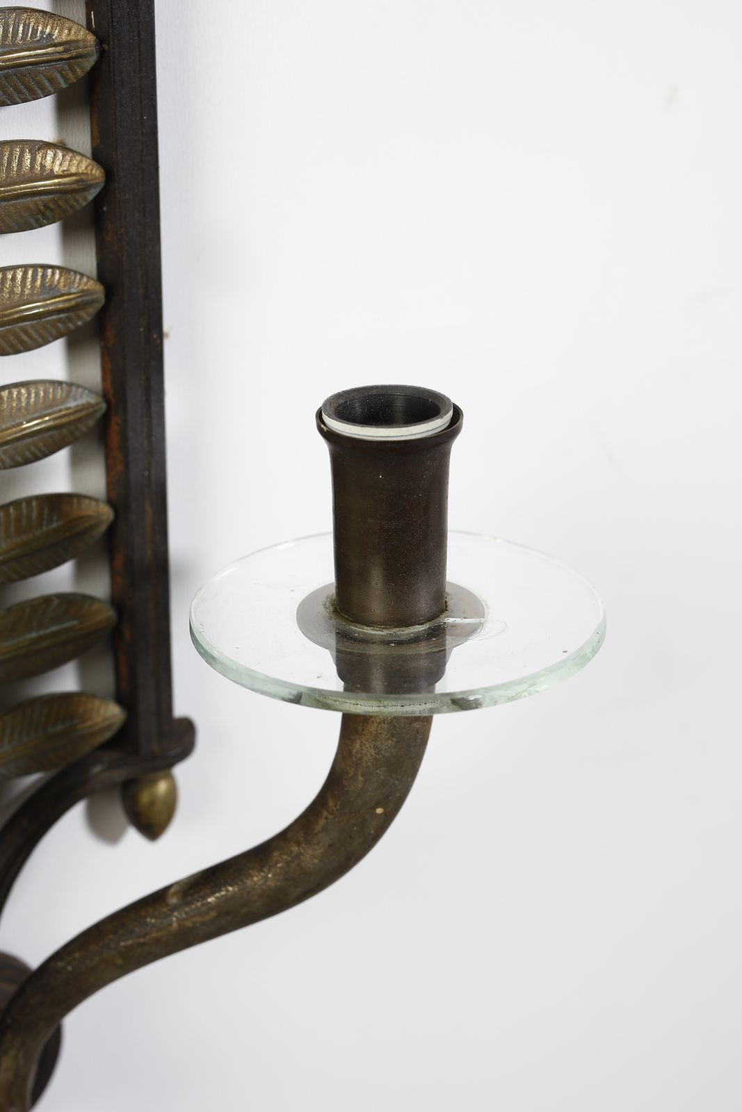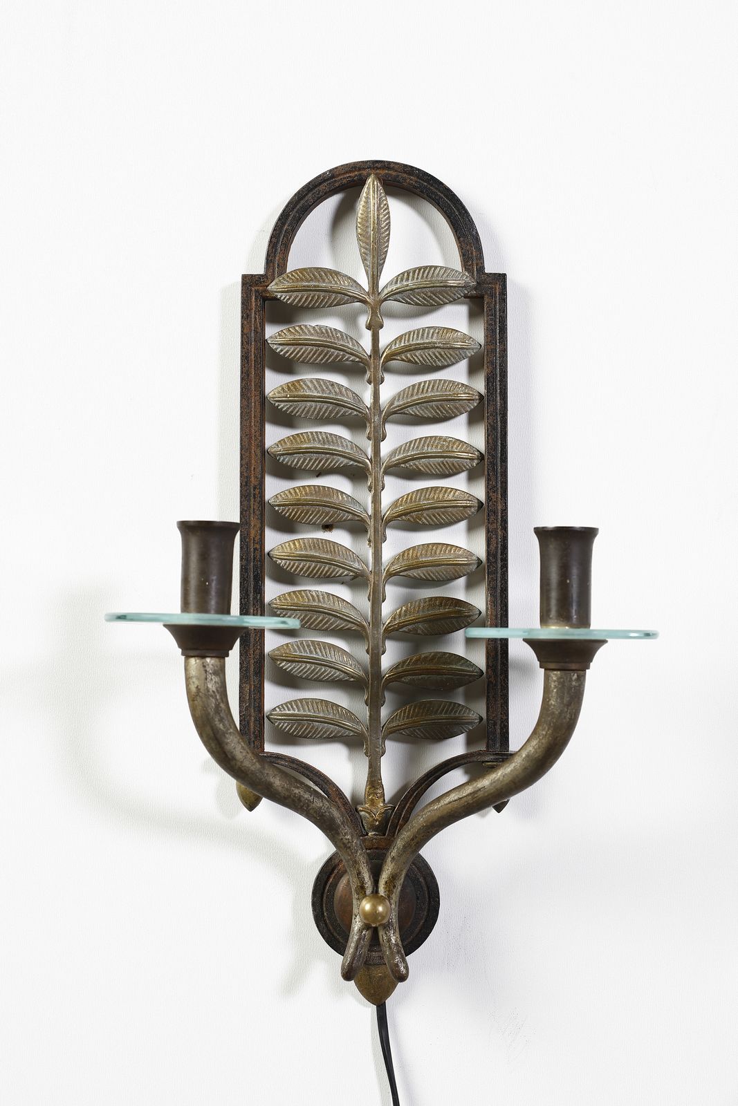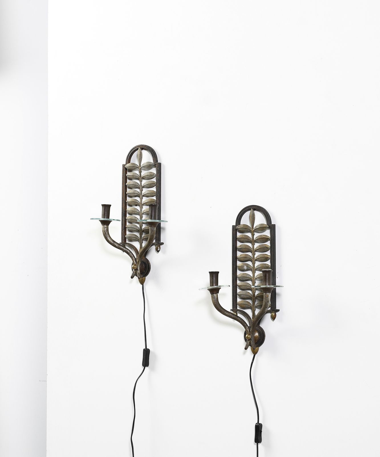 MANIFATTURA FRATELLI STRADA MIALNO Coppia di appliques. 1930. Vetro e bronzo. Cm 47x28x14. anni Trenta.