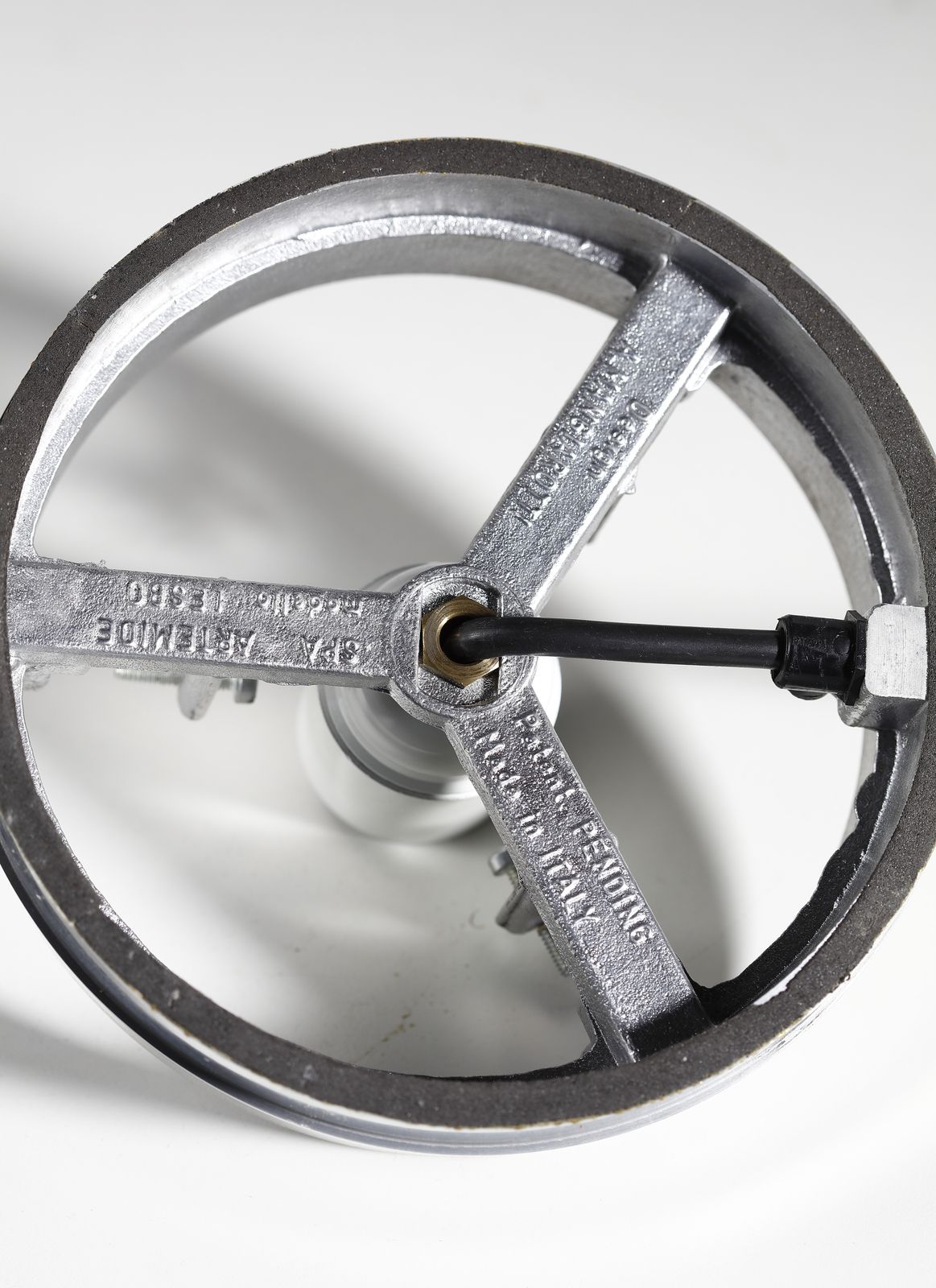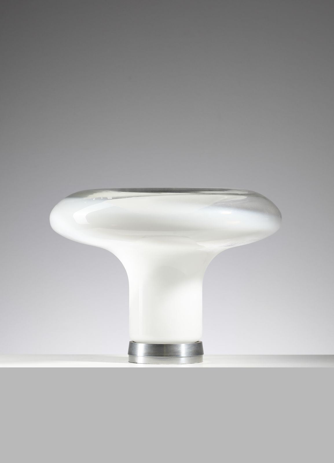 MANGIAROTTI ANGELO (1921 - 2012) Lampada da tavolo Lesbo per Artemide. 1966. Metallo e vetro soffiato. Cm 38x54x54. Marchio della manifattura. Bibliografia: Giuliana Gramigna, Repertorio del Design Italiano1950-2000 per l'arredamento domestico, Allemandi, 2011, pag. 140