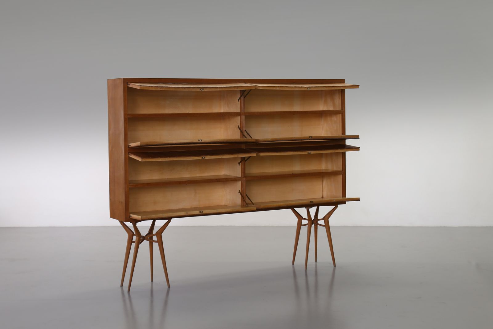 ROMANO AUGUSTO Mobile da soggiorno. Legno di teak.. Cm 160x199,50x33. anni Cinquanta.Bibliografia (per modello simile): Aloi R., L'Arredamento Moderno Quarta Serie, Ulrico Hoepli, 1949, fig.538