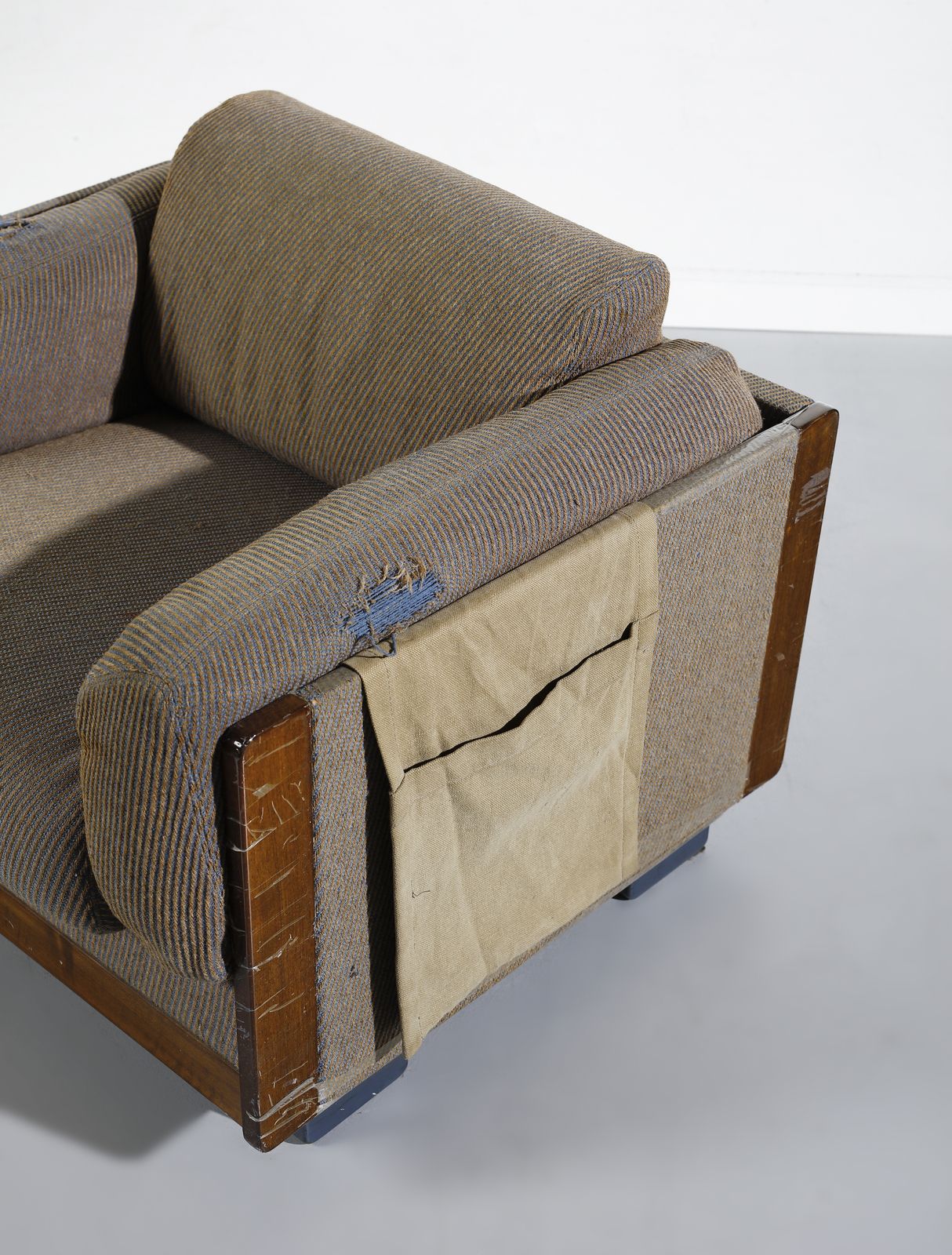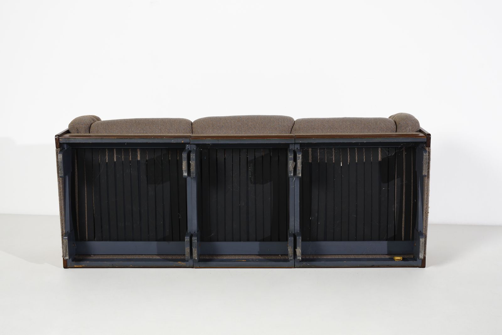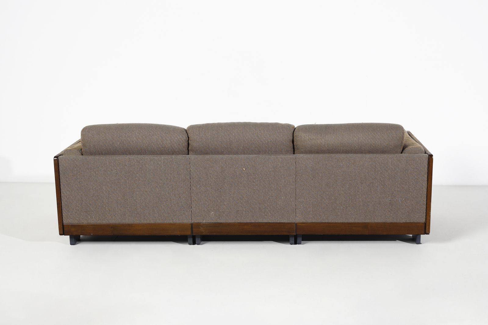 SCARPA AFRA (1937 -2011) & TOBIA (n. 1935) Poltrona e divano 920 per Cassina. 1966. Legno e tessuto imbottito.. Cm 65x202x80. Misura poltrona 65 x 89 x 80 cmEtichetta della manifattura.Bibliografia: Giuliana Gramigna, Repertorio del Design italiano 1950-2000, Allemandi, 2011, pag. 124